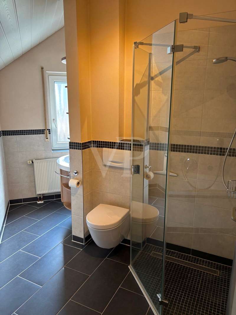 For sale is a spacious semi-detached house built in 1993 on a 233 m² plot. With a living area of approx. 143 m², this property offers generous space for a family or potential investors. The property is in need of renovation, offering the opportunity to realize individual design wishes. The semi-storey layout of this property allows for flexible use of space. A total of six rooms are available, including four bedrooms. The space is complemented by two bathrooms, which could be renovated to bring them up to date. A highlight of the property is the granny apartment, which has a separate entrance. This unit is particularly suitable for accommodating guests or for use as an independent living area. The existing fitted kitchen, including large electrical appliances, is also being sold and offers a functional cooking area. Additional storage options are provided by the cellar rooms, the pantry and the cupboard room, which are designed to suit the size of the house. There is a heated utility room on the first floor of the property, which has a washing machine connection and a sink. This complements the practical character of the property and offers residents additional convenience in their everyday lives. Tiled rooms with a water connection are available in the basement, which can be used as storage space or as hobby rooms. A wood-burning stove, which can be rotated, creates a pleasant atmosphere on cooler days and underlines the cozy character of the living spaces. Media reception is provided by an installed satellite system, which offers a wide range of television viewing options. A garage with a roof terrace above rounds off the offer and provides space for your vehicle as well as additional open space for plants or relaxation, for example. This semi-detached house is ideal for buyers who would like to take the opportunity to renovate and design a house to their liking. If you are interested in a viewing or further information, we are at your disposal and invite you to discover the potential of this property.