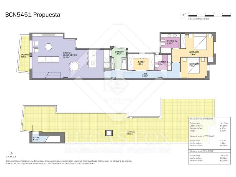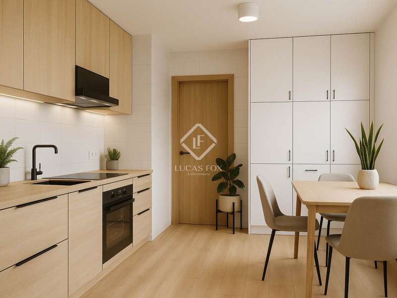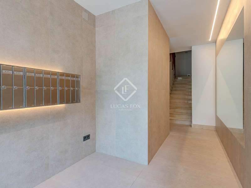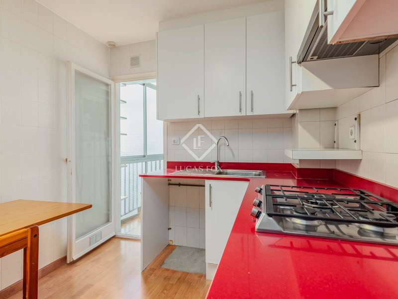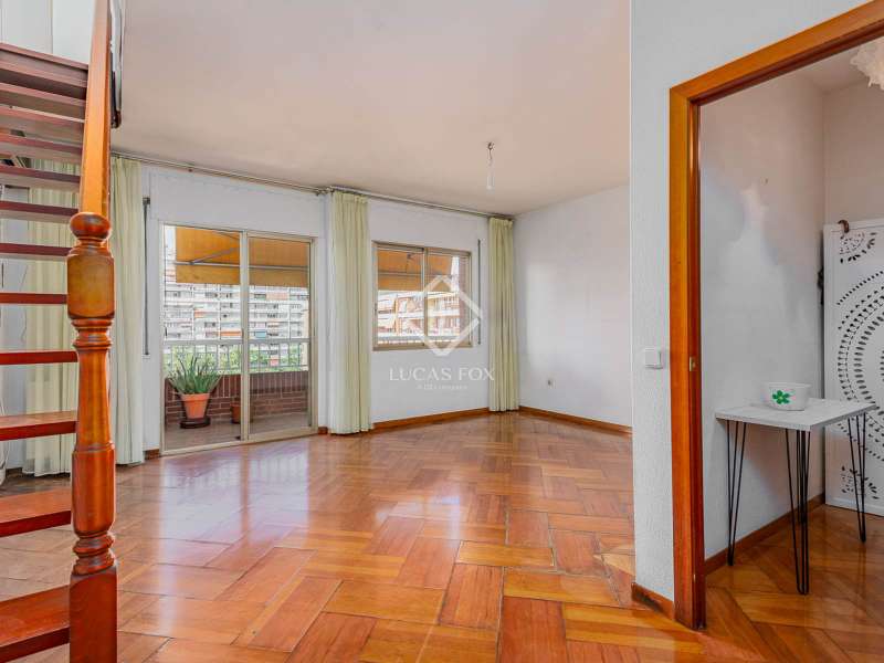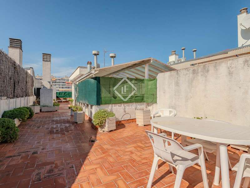 The property is spread over a single floor. A entrance hall welcomes us and leads to a dining room living room with a 5 m² balcony offering beautiful, unobstructed views of the Plaza de Les Corts park. Its large windows flood the space with natural light. Stairs access from the property to an 83 m² terrace on the building's roof, completely private and ideal for enjoying the outdoors year-round. The functional and bright kitchen -diner has a practical utility room.