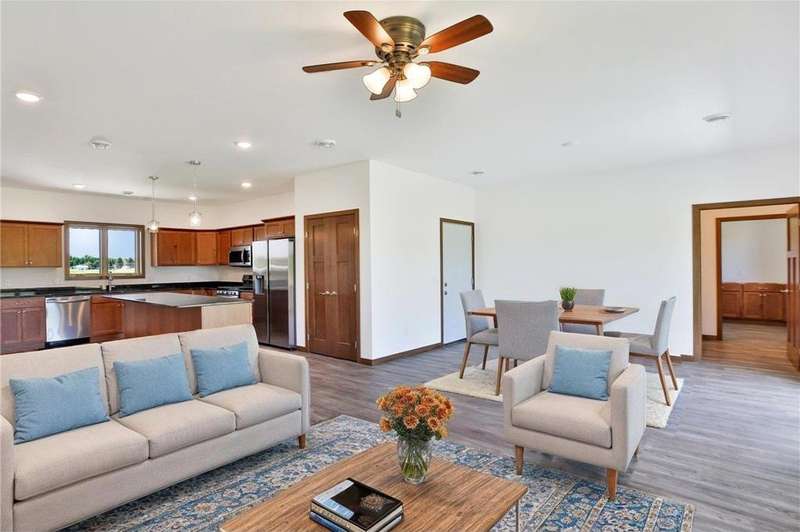 Don't miss this exceptional two-bedroom, two-bathroom patio home. This residence boasts an open floor plan, featuring granite countertops, main floor laundry, and stainless-steel appliances. Additional highlights include central air conditioning, a patio, and a heated, insulated oversized two-car attached garage. The property is equipped with gutters, a concrete driveway, water softener, a concrete patio, in-floor heating in both the house and garage, and a spacious primary suite complete with a walk-in closet and a master bath featuring a tiled shower. Conveniently located near shopping, schools, trails, and more, an adjacent lot is also available for purchase. Schedule a showing today!