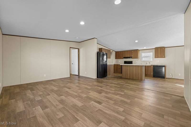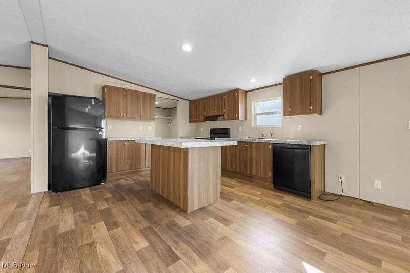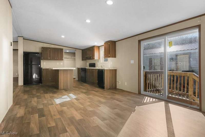 Wonderful opportunity to live in a new 2024 manufactured ranch. This beautiful home offers 4 bedrooms, 2 full baths, spacious open kitchen, dining and living room areas. Kitchen has ample cabinet and counter space. Breakfast bar/work island included, black dishwasher, refrigerator and stove. Large laundry room, master bedroom has full bath and walk in closet. Move in ready. The lot is large and private at the dead end of the park to the left when you pull in main drive. This property features a private backyard which is completely fenced in with a 6 privacy fence. Shed, patio with awning. All sizes, square feet, and ages estimated. REMEMBER THIS HOME IS LOCATED AT THE VERY END OF ROAD BESIDE OFFICE. ALL FENCED IN AND PRIVATE.