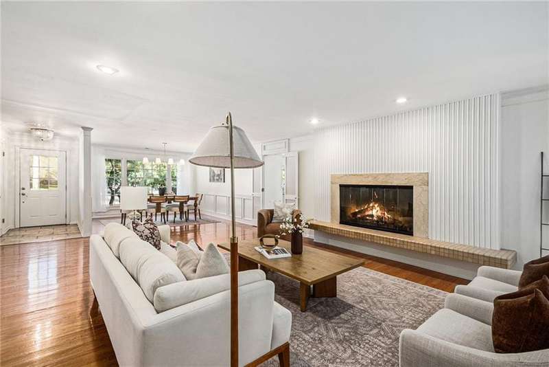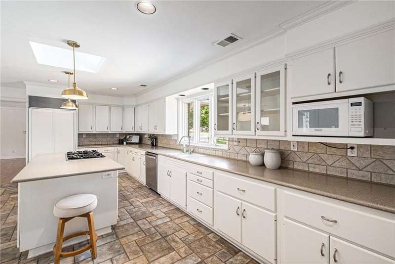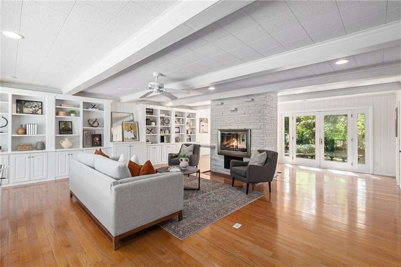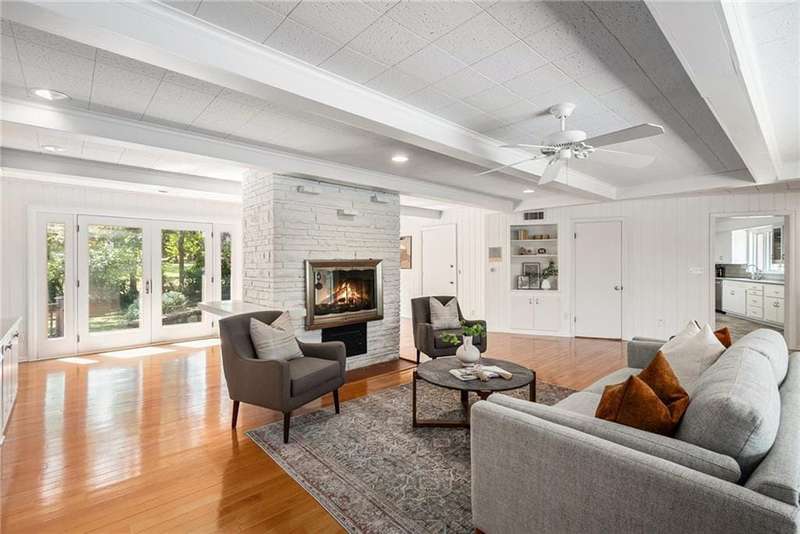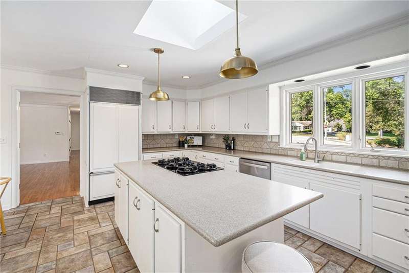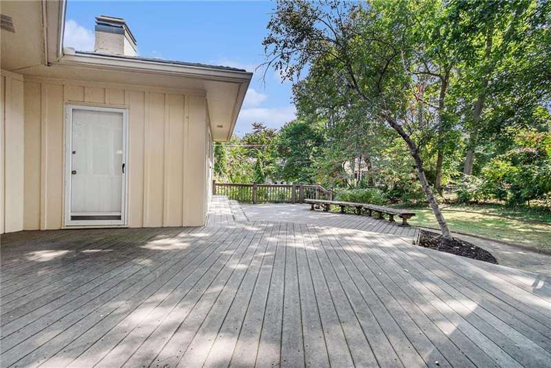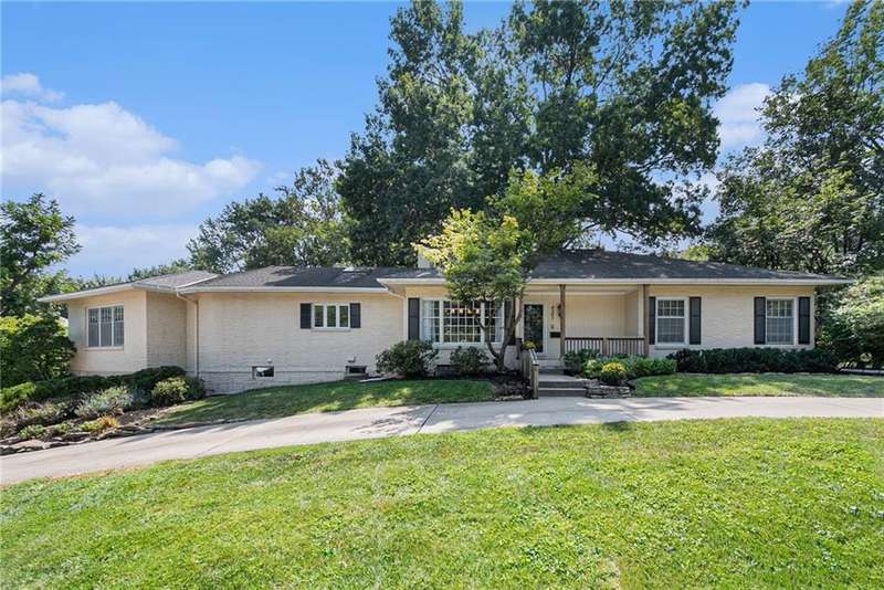Discover the charm of this sprawling raised ranch, perfectly situated on a beautiful, treed corner lot in the heart of Old Leawood. This exceptionally spacious home is brimming with potential and offers a warm, inviting layout. You'll be welcomed with a circle drive and established landscaping. A covered front porch leads you to a formal entry and an open, light-filled living room with a magnificent fireplace and hearth. Formal dining here is enhanced with large windows and beautiful woodwork. Natural light, updated paint and new fixtures make it a fresh and vibrant space. You'll love access to the screened-in porch. The generous kitchen is designed with a center island, double ovens, gas range, plenty of cabinet storage, excellent counter space, and a cozy breakfast nook with access and views to the sprawling backyard. An expansive and open second living room just off the kitchen enhances the homes entertaining flow, featuring custom built-ins, a two-sided fireplace, and walk-out access to a large deck overlooking the backyard. Half bath on the main level. A perfect blend of the modern space you need with the charm and character Old Leawood is known for. Main floor offers 4 spacious bedrooms each w/ excellent closet space, including a primary suite w/ a private en suite bath and double closets. Wide hallways continue the generous feel of the home. The lower level extends the living space with a 5th bedroom complete with an egress window, a spacious rec room or home office, wet bar, and a full bathroom. Youll also find incredible storage options throughout the lower level. Two car garage and don't miss the expanded workshop area behind the garage! Hobbies, work, entertaining, friends and family all have room in this one-of-a-kind home! Large lot with fenced backyard, mature trees, spinkler system and desirable neighborhood are ready for you! With its prime Old Leawood location, abundant living space, and versatile layout, this home is ready for its next chapter.