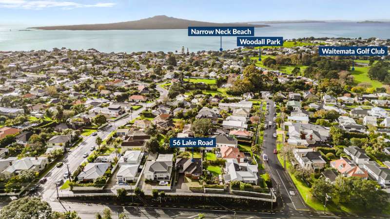 Tucked away on a quiet no exit slip road elevated above Lake Road, this beautifully maintained brick and tile period home is your ticket to the classic Kiwi dream – a spacious home on a full, sun soaked site in a highly desirable location. Set on a generous 656m² north-facing section, this home is perfect for families, with room to grow, play, and make it your own. Inside, you’ll find 3 to 4 bedrooms, expansive living areas, and a flexible downstairs rumpus or office – ideal for teenagers, working from home, or extra guests. There's also a full downstairs bathroom for added flexibility and convenience. The light-filled main lounge is the heart of the home, featuring French doors on both sides that open to sunny decks – perfect for entertaining or relaxing. Enjoy elevated views towards Rangitoto from the comfort of your living room. The home has been thoughtfully updated with a modern kitchen, stylish bathrooms, and a near-new gas central heating system. It’s insulated in the roofspace, with gas hot water and an HRV system to keep you comfortable all year round. This elegant character home blends timeless appeal with modern comfort. Featuring a well appointed kitchen, stylish bathrooms, and the convenience of gas central heating and HRV system, the key upgrades are already in place. With its solid construction and beautiful native timber floors, it offers the ideal foundation to personalise, add value, and create a home that’s truly your own. Outdoors, the large, level garden offers a haven for kids and pets, and there's excellent off-street parking plus the potential to add more – even space for the boat! Just a short walk to Narrow Neck Beach, Waitemata Golf Course, Vauxhall Primary, Belmont Intermediate, and Takapuna Grammar – this location is unbeatable for lifestyle and education. Don’t miss this rare opportunity to secure a large, sunny site in a top coastal neighbourhood.