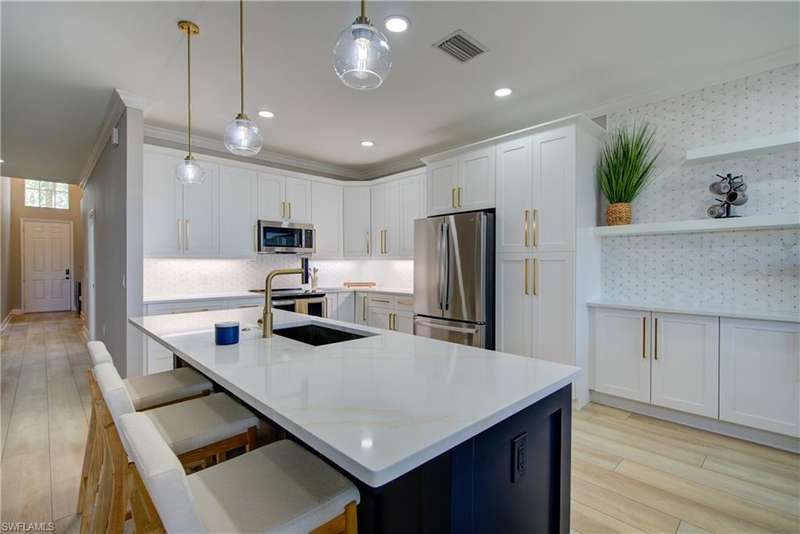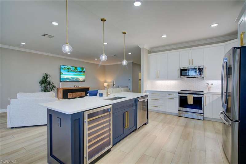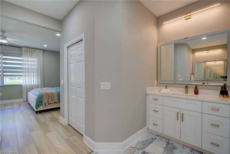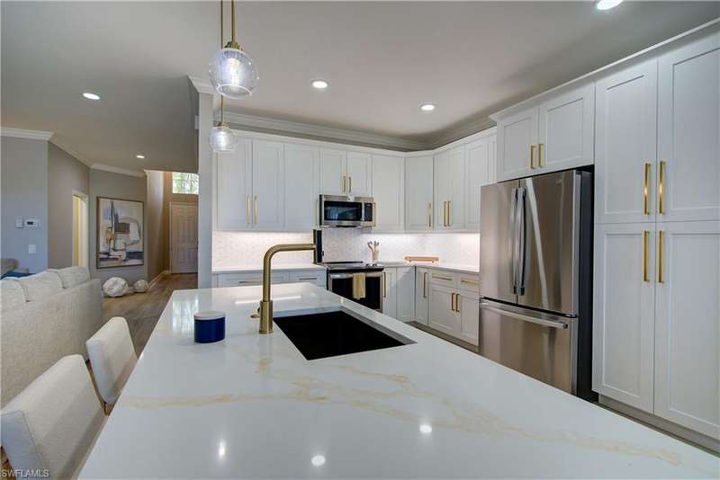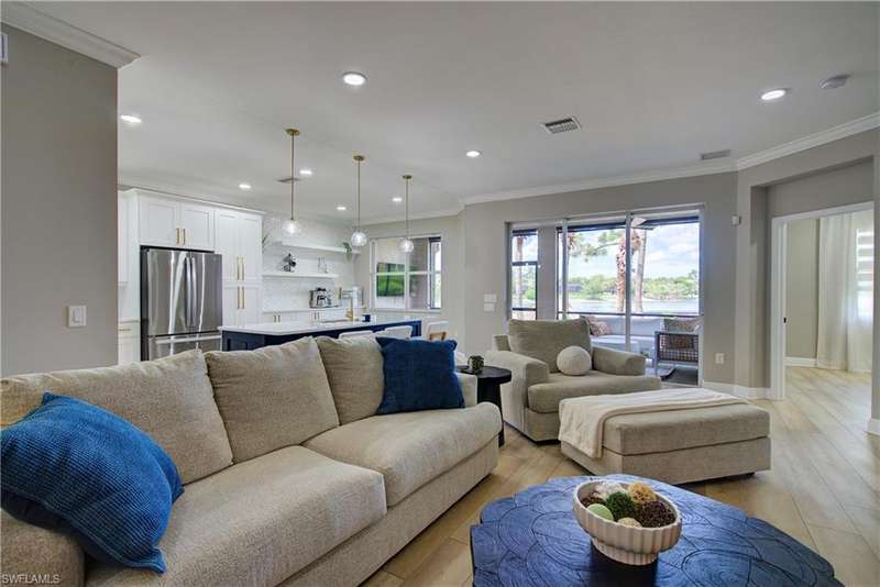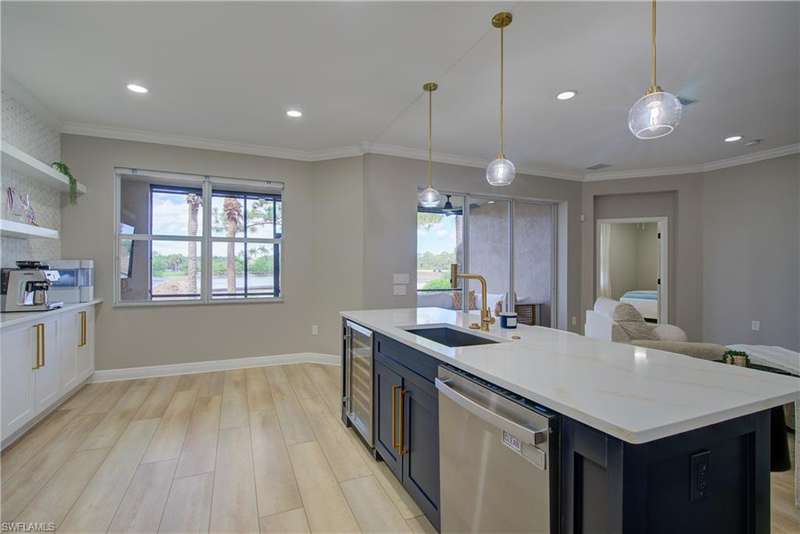 Fully Renovated & Turnkey with Golf Membership Included + Stunning Golf Course Views! Move right in to this beautifully updated home offering a long, panoramic view of the 18th hole, sparkling lake, clubhouse, and fountain. Golf membership is included, with no waitlist providing immediate access to the bundled golf lifestyle. Every inch of this condo has been thoughtfully upgraded: all-new luxury vinyl plank flooring, baseboards, crown molding, recessed lighting, designer fixtures, and custom window treatments throughout. Even the door hardware and hinges are brand new. The open-concept layout features a fully renovated kitchen with GE Profile appliances, custom cabinetry, quartz countertops, a large island, and a stylish tile backsplash. The spacious living area includes a 75-inch TV and all-new furniture everything is included, making this a true turnkey opportunity. The primary suite offers a peaceful retreat with recessed lighting, his and her closets, and elegant window treatm