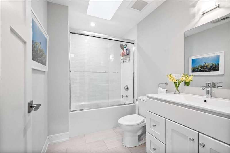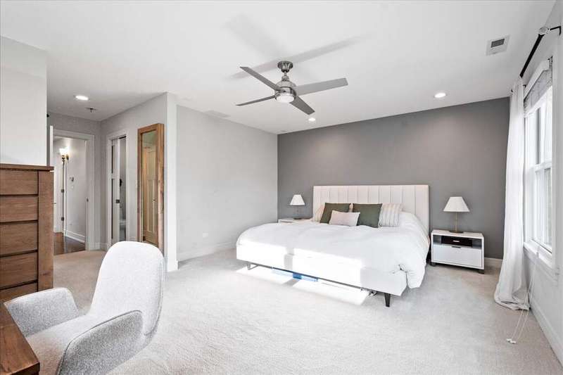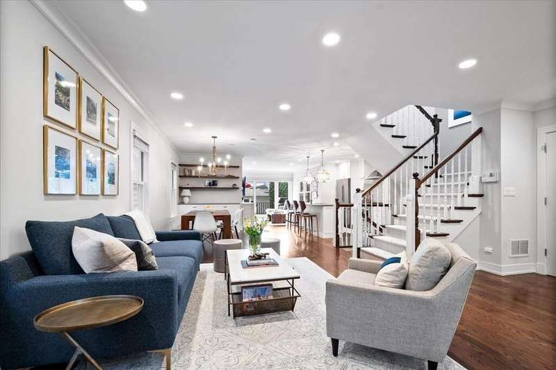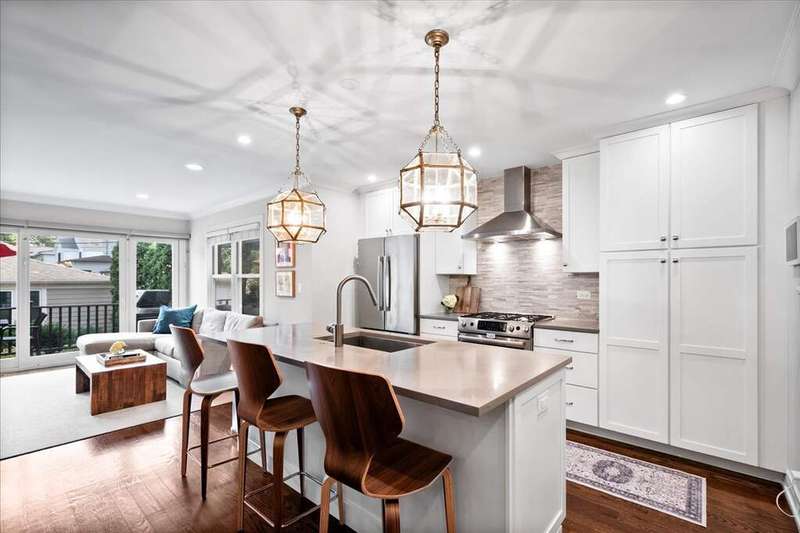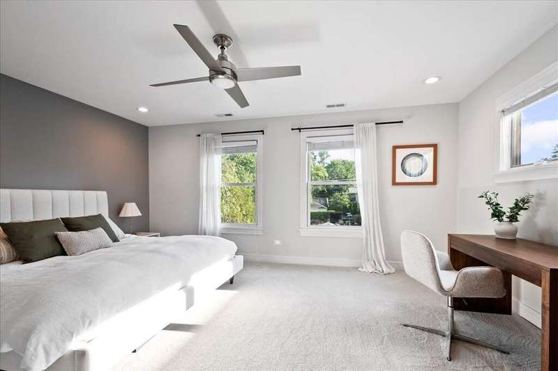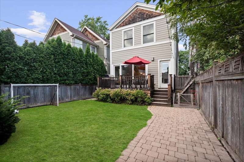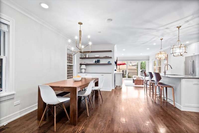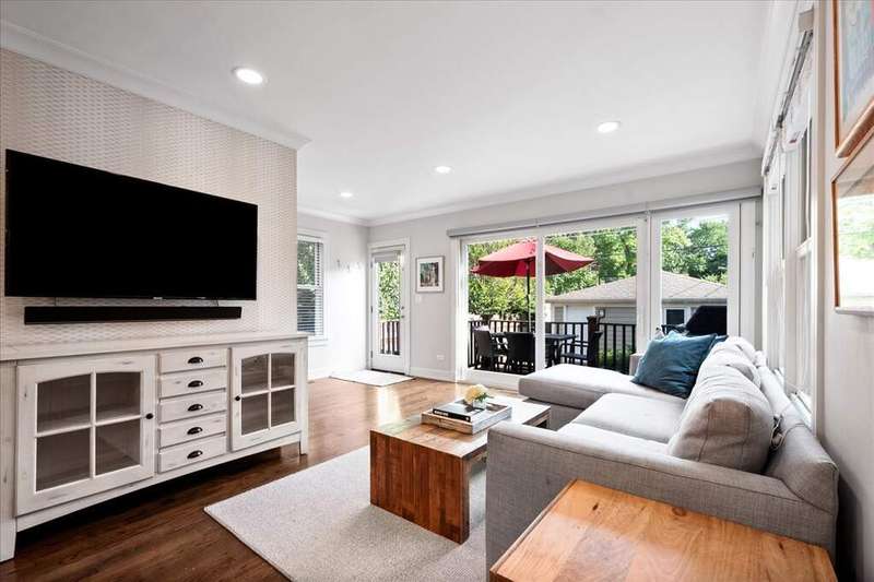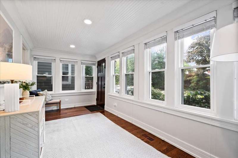 Adjacent to beautiful Bent Park in Northwest Evanston, this bright and airy 3-bedroom, 3.5-bath home was completely renovated in 2016 and has everything you need for modern living. A charming front sunroom welcomes guests with warmth and character, featuring French doors that open to the light-filled living room. The main level is open and bright, seamlessly blending the kitchen, dining, and living spaces-perfect for everyday living and entertaining. The kitchen features quartz countertops, Bosch stainless steel appliances, a deep sink, a dry bar, an island, and a pantry. A cozy family room flows effortlessly out to a cedar deck, creating the ideal indoor/outdoor entertaining space. Upstairs, all three bedrooms are conveniently located along with a laundry room. The large and luxurious primary suite includes a double vanity, a spacious walk-in shower, and a large walk-in closet. The finished basement has 9' ceilings, a perfect family/multi-purpose room, storage, a full bathroom, and 4th bonus room currently used as a workout space but would also make a great guest room or office. Every detail was addressed in the 2016 gut renovation-including new windows, flooring, baths, kitchen, and mechanicals. Located on tree-lined Harrison Street in the sought-after Willard Elementary district, this home combines timeless charm with modern style in a truly unbeatable location. Walk to schools, Central Street Restaurants and Shops, and more!