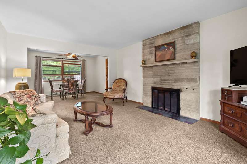 HIGHEST & BEST DUE SUNDAY 8/17 BY 6PM. This 3-bedroom, 2-bath ranch offers a practical layout and plenty of potential. A newer roof and furnace are already in place, and hardwood floors are hidden beneath the hallway and bedroom carpets, ready to be uncovered! The living room features a wood-burning fireplace, and the fenced yard includes a large covered patio for outdoor enjoyment. Kitchen and baths reflect an earlier style, offering an opportunity to create your own look. The partially finished basement provides extra living space and abundant storage. Convenient location near shopping, schools, and commuter routes. Neighborhood offers optional pool and tennis membership. Move in and update over time.