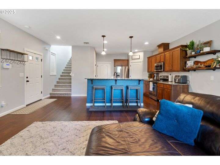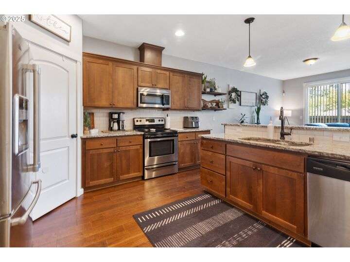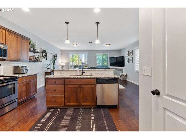 3 bedrooms 2 1/2 bathrooms, 1624 sqft, built in 2016. Great room style floor plan with laminate floors. Living room with fireplace is open to dining. Kitchen has granite countertops, stainless dishwasher, island, built-in microwave and pantry. Upstairs laundry room. Primary bedroom has vaulted ceilings, walk in closet and attached bath. Open loft area upstairs. Quiet neighborhood.