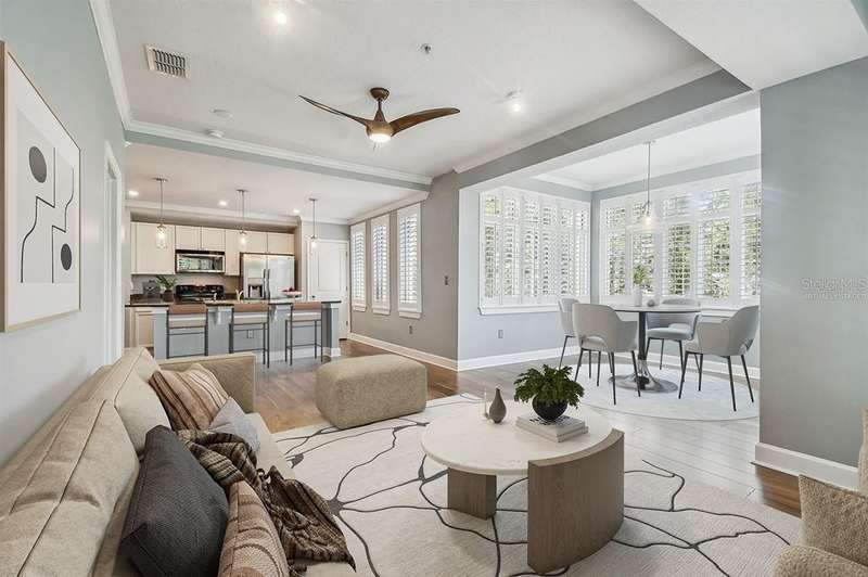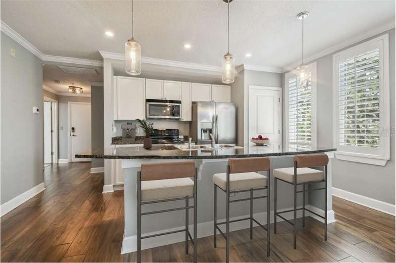 One or more photos have been virtually staged. LOCATION IS EVERYTHING! Discover elevated urban living in one of Tampa's most desirable neighborhoods-Old Hyde Park Village!! This spacious and stylish-2 bedroom/2-bathroom condo offers more than 1,300 SF of thoughtfully designed living space, it's just steps away from high-end shopping, gourmet dining and the charm of tree-lined, walkable streets. As you enter you are greeted by an open floor plan that seamlessly connects the living, dining and kitchen area, ideal for everyday living and entertaining. The kitchen is outfitted with stone countertops, stainless steel appliances and upgraded lighting fixtures, this space is as functional as it is beautiful. Both bedrooms are generously sized, offering ample closet space and plantation shutters throughout that add a touch of Southern elegance. This impeccable, refreshed condo has been newly painted with neutral tones that complement any décor and it's move-in-ready offering a bright, airy feel with clean walls and a fresh canvas for your personal touch. Step out onto the balcony, a unique architectural feature with arched openings and decorative railings that offer both charm and privacy. It's the perfect spot to enjoy a morning coffee, glass of wine or simply unwind while taking in the character of the surrounding neighborhood. Living here means you are steps away from everything Hyde Park Village has to offer...Barry's gym, CineBistro luxury movie theater, upscale cosmetic stores, high-end furniture stores, local coffee shops, a neighborhood bakery, a boutique hotel, and some of Tampa's trendiest bars and eateries. Whether you are in the mood for fine dining, casual brunch, or designer shopping...it's all outside your door. This is more than just a home-it's a lifestyle!! Don't miss this rare opportunity to own a piece of Hyde Park living, where timeless design meets modern convenience in one of Tampa's most walkable and prestigious neighborhoods.