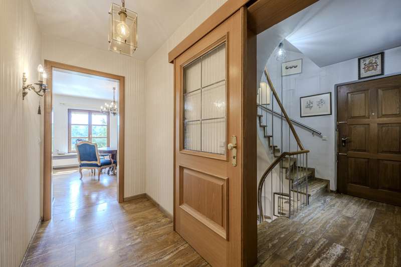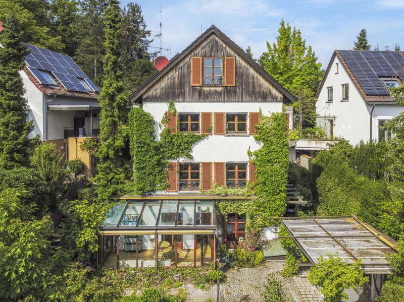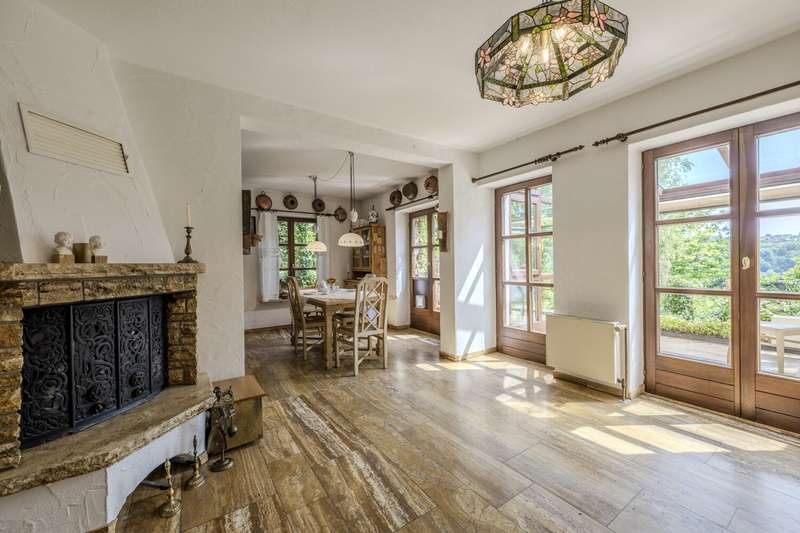 In a sought-after, absolutely peaceful elevated location in Stuttgart-Frauenkopf, this detached single-family home is a real gem for nature lovers and families who demand space, atmosphere and quality of life. The house is idyllically nestled on an enchanted, lovingly grown-in plot that guarantees privacy and relaxation. Surrounded by mature trees, flowering shrubs and overgrown garden paths and ponds, the property offers a very special oasis of retreat - almost like a little paradise in the middle of the countryside. The property impresses with its charming character, generous room layout and well thought-out furnishings. You can park your car conveniently in or in front of the double garage and reach the entrance to the house via a few steps. On the first floor there is a light-flooded living and dining room, which was open-plan in the course of a complete renovation in the mid-1980s. A beautiful parquet floor adorns the room and, together with a stylish wood-burning stove, creates a cozy atmosphere. The hallway leads to the utility and hobby room and the rear exit. On the garden level, you will find a lovingly furnished eat-in kitchen with direct access to the conservatory, which offers a wonderful view of the greenery all year round. Whether it's sunny breakfasts or cozy evenings with the family - living here is a pleasure. There is also a (guest) bathroom with a floor-level shower, which is particularly practical if you have visitors. The conservatory gives you access to the terrace or your private recreation area. With a total of three children's bedrooms, a spacious master bedroom, hobby room, outdoor pool and three fully equipped bathrooms, the house offers plenty of space for family life, individual development or working from home. The room layout is flexible and ideally suited to the needs of families. The bedrooms and children's rooms are spread over the upper floor and attic and offer attractive, usable space and a wonderful view of the countryside. One of the bathrooms is accessible - en suite - via the walk-in dressing room in the master bedroom. The property is in a well-kept, partly modernized condition. During the renovation in 1986/1987, the house was insulated and basic installations such as heating and electrics were renewed. At the same time, it offers potential for individual design and further development - whether stylish modernization or careful renovation in keeping with the unique character of the house. The property itself is an absolute rarity in this location: quiet, green, barely visible and yet excellently connected - an ideal place for families, those seeking peace and quiet or people with a sense for something special. The garden area extends over a meadow orchard and allows you and your children to discover nature in your own home.