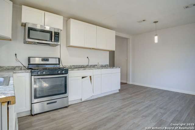 Discover this beautiful 3-bedroom, 2-bathroom home offering an inviting open layout and modern finishes throughout. The spacious living area flows seamlessly into a bright kitchen featuring stainless steel appliances, ample cabinetry, and stylish countertops-perfect for entertaining or everyday living. With no carpet anywhere in the home, maintenance is a breeze and the space feels clean and contemporary. Enjoy the large private backyard-ideal for gatherings, pets, or simply relaxing in your own retreat. Situated on a quiet street just minutes from downtown San Antonio, this property offers unbeatable access to shopping, dining, parks, and all the excitement of city living. This home represents an amazing opportunity for buyers or investors seeking great value in a rapidly growing area. Move-in ready and priced to sell-schedule your showing today!
