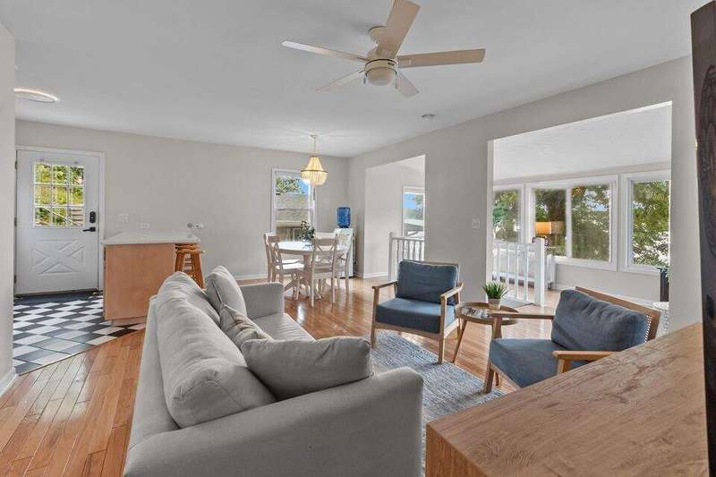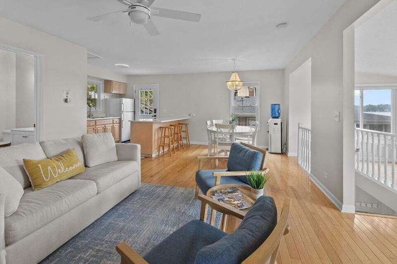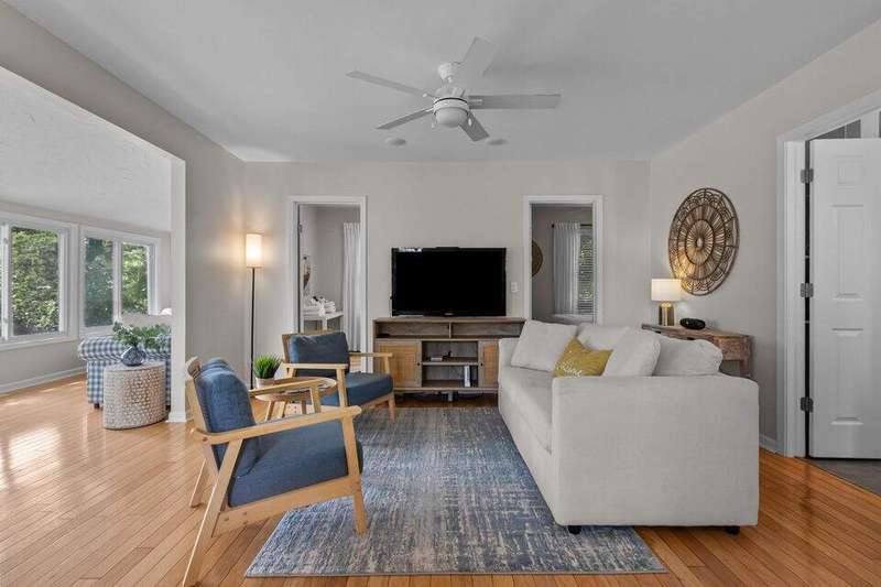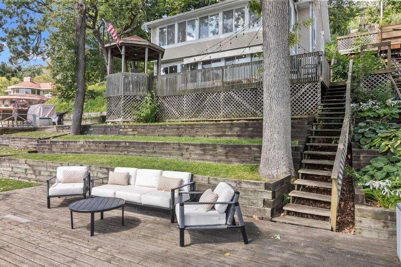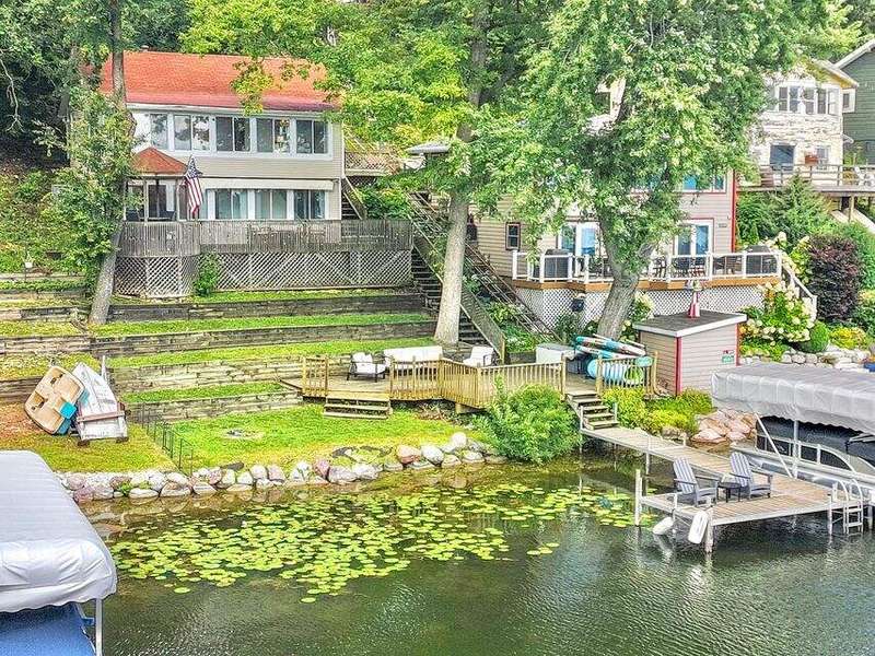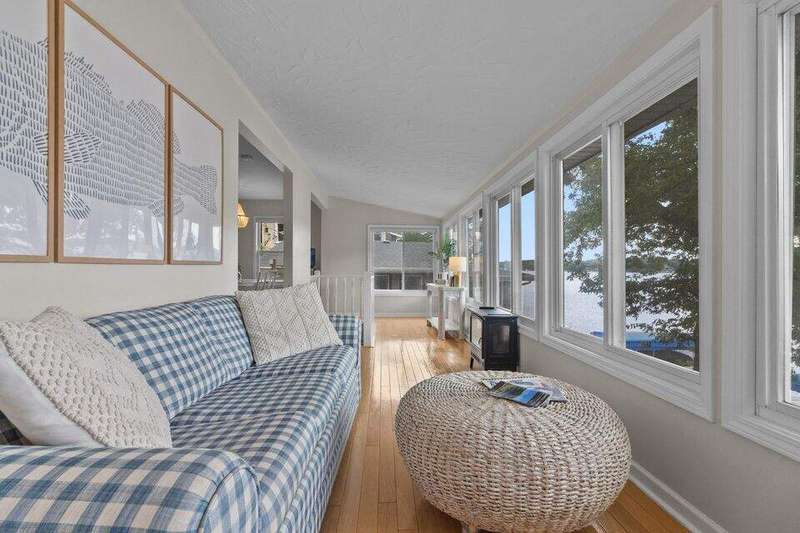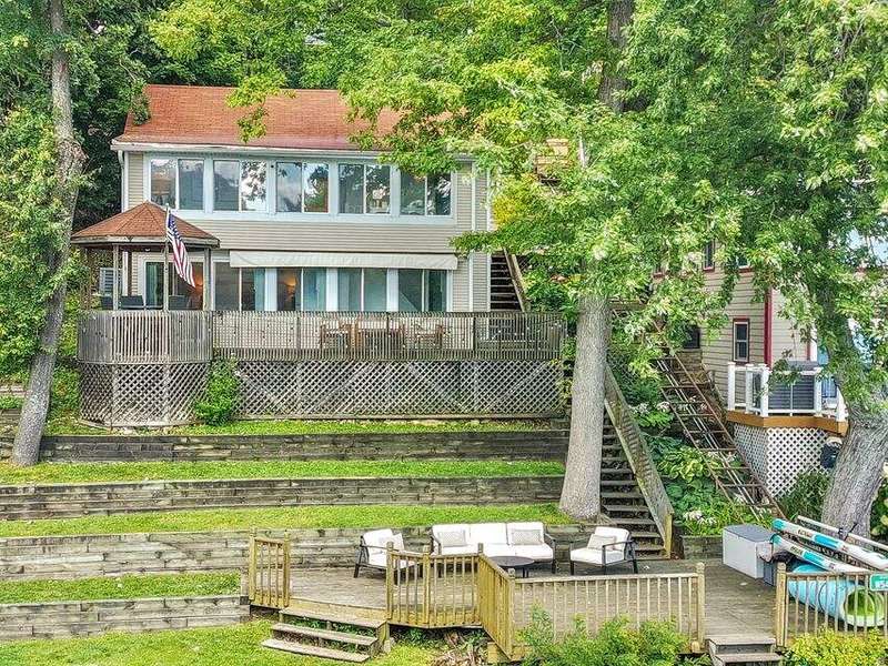 Picturesque lake cottage on Mill Lake being sold fully furnished, ready for you to enjoy from day one. This 3BR, 2BA home offers an updated kitchen, open living space, and a wall of windows that frame stunning lake views. Step outside to multiple decks for entertaining, or relax in the gazebo surrounded by nature. A shared tram provides easy access from the parking pad to the house and then to the water, making lake days effortless. Whether you're seeking a weekend retreat or year-round escape, this turnkey property combines comfort, convenience, and charm in a truly special setting.