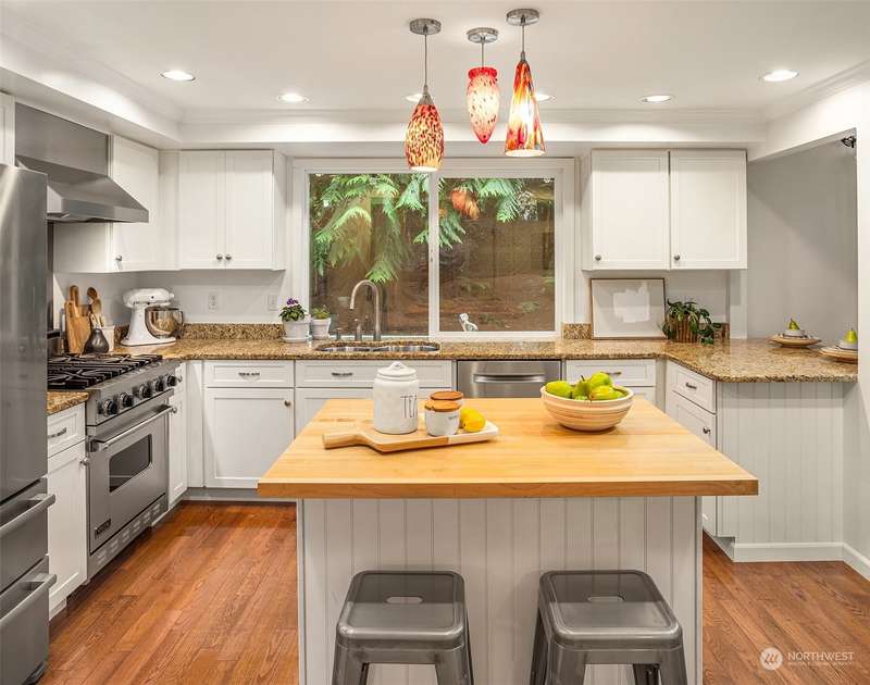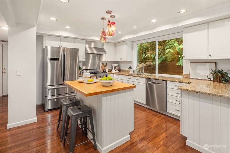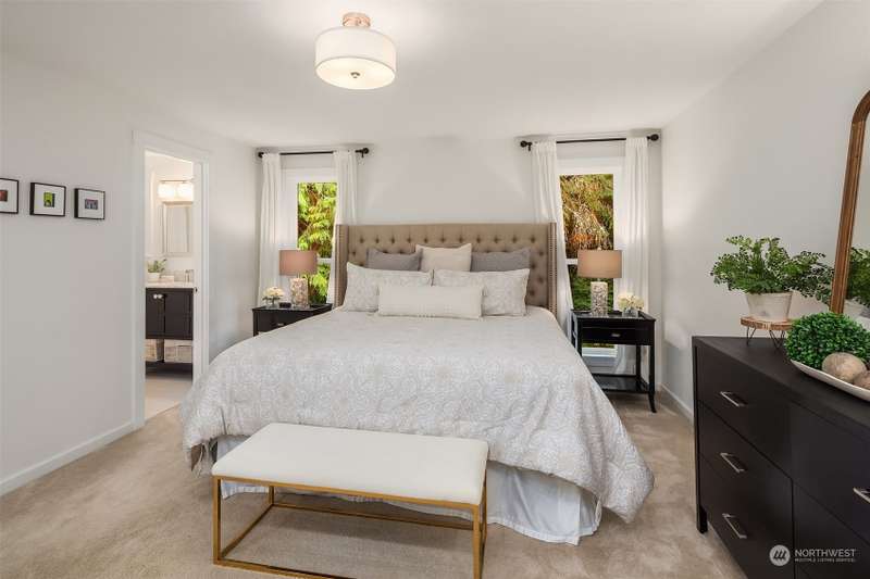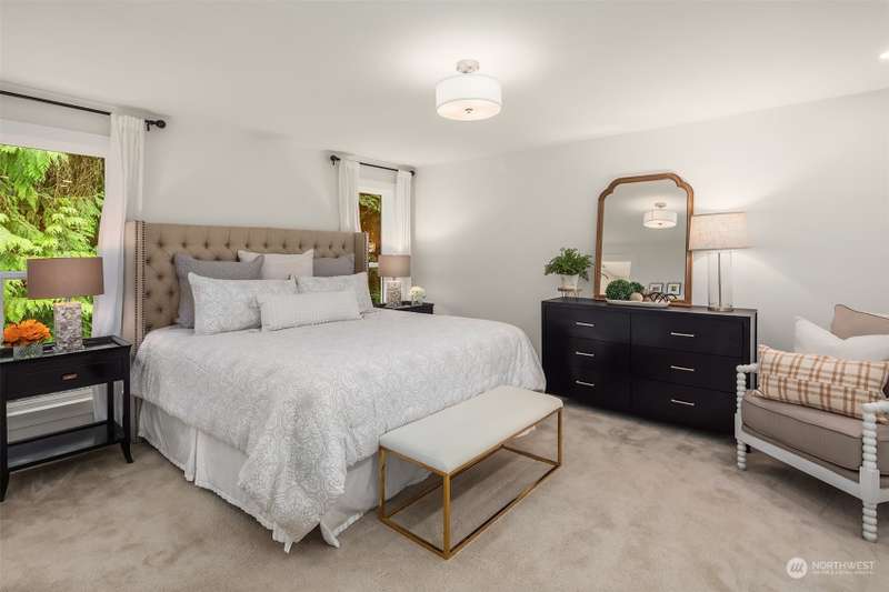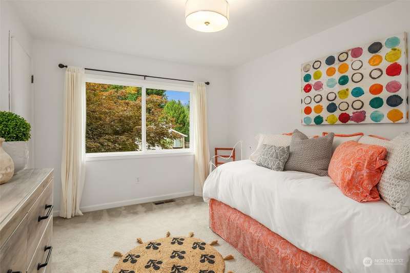 Suburban living at its best in this timeless traditional 2-Story with spacious lot in upper Tam O'Shanter West neighborhood, conveniently located minutes from Microsoft & the vibrant communities of Redmond & Bellevue. This lovingly maintained charmer in quiet cul-de-sac is thoughtfully updated & move-in ready w/functional floor plan. Generous primary + renovated en-suite on upper level with 3 additional bedrooms. Entertain on the extensive patio & wrap around mature landscaping in private backyard retreat. New hardwoods in living room, updated kitchen, baths + laundry. 2 car garage w/wkshp area on back wall. 50 yr composite roof (2001). Award-winning Bellevue schools~Bennett Elementary & Interlake High. Near 520/I-90/Amazon/Google/MSFT.