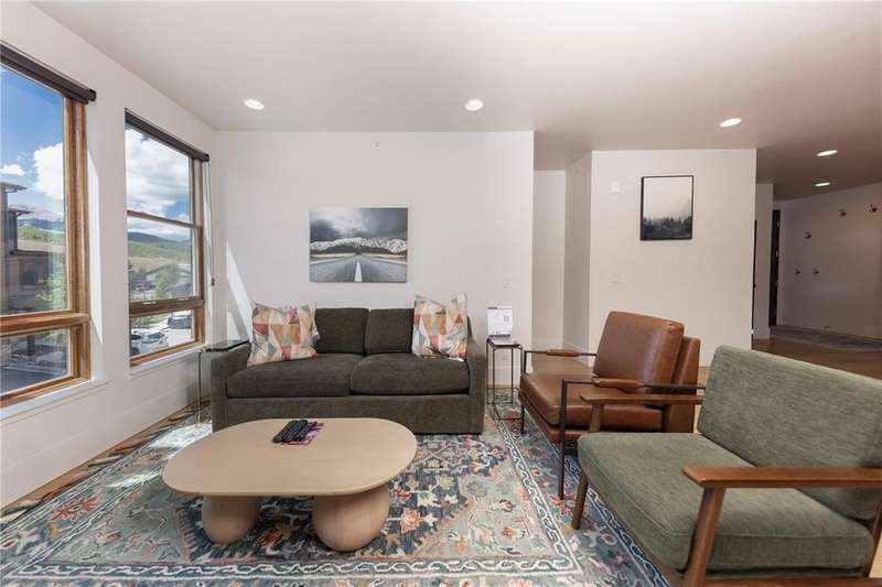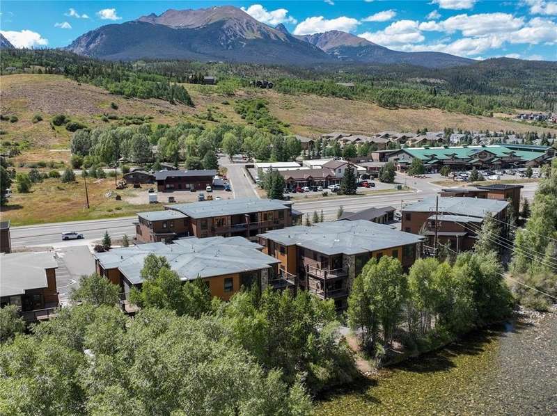 Discover the essence of mountain living in this exceptional Silverthorne condo, perfectly nestled along the Blue River, just steps from gold medal fishing waters and minutes from four world-class ski resorts. This 2-bedroom, 2-bathroom corner unit features an open-concept design, a stylish modern kitchen, a cozy gas fireplace with stacked stone surround, and a private balcony. The convenience of an in-unit washer/dryer and a one-car garage adds practicality, while the fully furnished, turn-key setup makes it an ideal rental investment or vacation getaway.