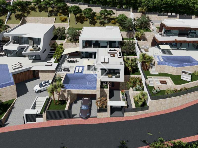 This impressive new build property is located within an exclusive gated complex of only 4 independent villas, offering privacy and luxury in an exclusive environment. On the ground floor, the open-plan design integrates the bright living-dining room and kitchen, creating a perfect space for entertaining and family-friendly life. In addition, it has a room with an en-suite bathroom and a guest toilet . The exterior area of this floor has a cozy porch and an exquisite garden with an infinity pool that integrates perfectly with the landscape. Accessing from the upper floor , there is the main bedroom with an elegant dressing room and en-suite bathroom , as well as two other bedrooms with en-suite bathroom each, all designed to offer comfort and privacy. On this same level, there is the closed garage, providing convenience and security for the vehicles. With high quality finishes and meticulous attention to detail, this property offers a contemporary and sophisticated living experience in a tranquil and exclusive environment. Premium construction materials are combined with modern design elements to create an elegant and comfortable atmosphere throughout the property. The interior design reflects a contemporary and functional approach, with bright and airy spaces that maximize the use of space and natural light. The large windows and sliding doors allow a perfect connection between the interior and exterior, allowing you to enjoy the beautiful natural environment from any corner of the house. The location within the gated complex offers security and tranquility, while the proximity to local amenities such as shops, restaurants and beaches ensures a comfortable and convenient living experience. With a combination of elegance, comfort and privacy, this property represents a unique opportunity for those seeking an exclusive lifestyle on the Costa Blanca.