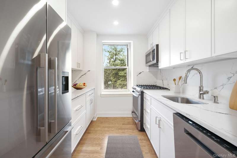 Welcome to this beautifully updated two-bedroom, two-bathroom condo located in the heart of Hastings on Hudson, just moments from shops, restaurants, parks, and public transportation. This bright and spacious apartment offers stunning views and a modern open layout perfect for comfortable living with oak flooring throughout. The kitchen features quartz countertops with a full backsplash, sleek stainless steel appliances including a Fisher & Paykel Refrigerator and a General Electric Profile dishwasher, and gorgeous finishes throughout. Elegant touches and recessed lighting flow seamlessly through the living and dining areas, creating a warm and stylish atmosphere. Both full bathrooms have been tastefully renovated, and the bedrooms provide ample space and natural light. Beautiful recently updated balcony for those quiet afternoons. Residents enjoy access to a fitness center, laundry room, playground, storage, and unassigned parking. With its prime location and high-end updates, this move-in ready home offers the best of convenience and luxury.