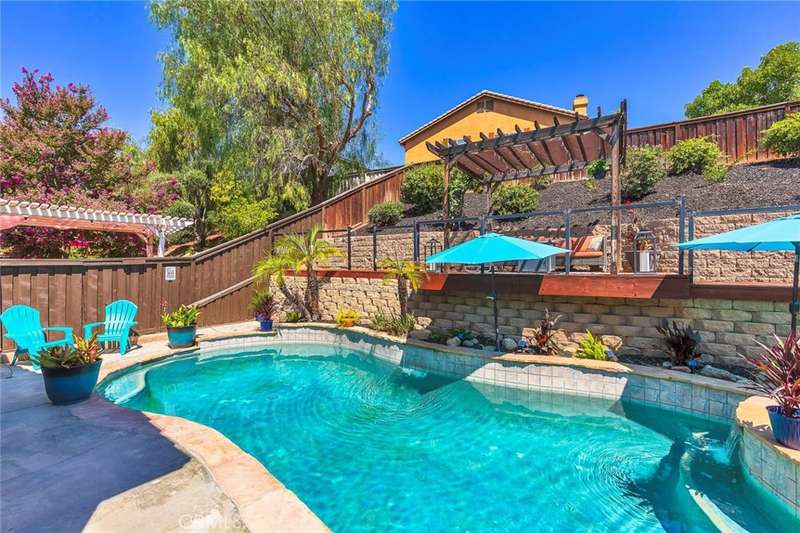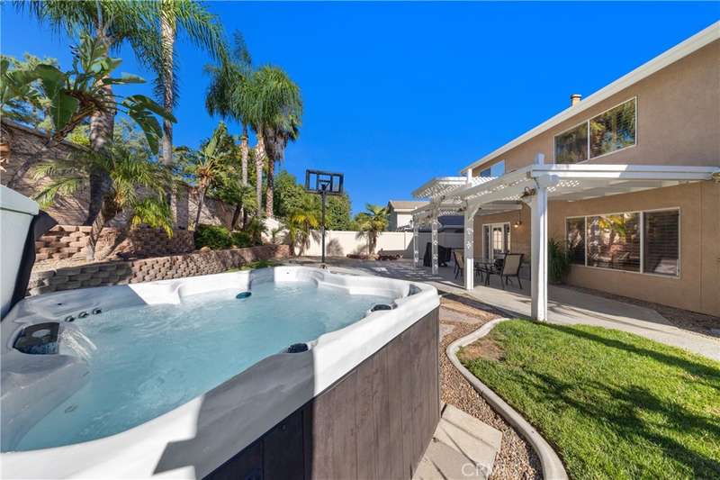 Welcome to 32240 Camino Herencia, a stunning property featuring 5 bedrooms, 4 bathrooms, and 2,143 square feet of luxury living space. This meticulously maintained property combines elegance, comfort, and modern amenities. Step inside to discover a spacious OPEN FLOOR PLAN bathed in natural light with beautiful TRAVERTINE & LUXURY VINYL PLANK FLOORING, PLANTATION SHUTTERS & upgraded window screens. The living area flows seamlessly into an UPGRADED KITCHEN equipped with STAINLESS STEEL APPLIANCES, GRANITE COUNTERTOPS, A LARGE ISLAND, AND WHITE CABINETS. The home boasts a LUXURIOUS PRIMARY SUITE with a walk-in closet and a spa-like ensuite bathroom featuring a soaking tub and a separate shower. A MAIN-FLOOR BEDROOM with a closet and a full bathroom adds convenience, while four additional bedrooms provide ample space for various needs. Upgraded light fixtures and fans throughout the home. This newly upgraded garage features epoxy floors and plenty of cabinet space. Step outside through your French doors & enjoy your private backyard with tons of room for entertaining, equipped with a SPA, full patio cover, beautiful concrete, and lush tropical landscape. Some of the amazing features every home needs include a 22-panel SOLAR SYSTEM, brand new HVAC system, new water heater and much more. Situated in the amazing DESIRABLE NEIGHBORHOOD Paloma Del Sol, this home is conveniently located near TOP-RATED SCHOOLS, community PARKS, SHOPPING, DINING, AND MAJOR FREEWAYS, the wonderful WINE COUNTRY & PECHANGA RESORT. This cozy home is in pristine condition and exudes a true sense of pride of ownership. This is a MUST-SEE!