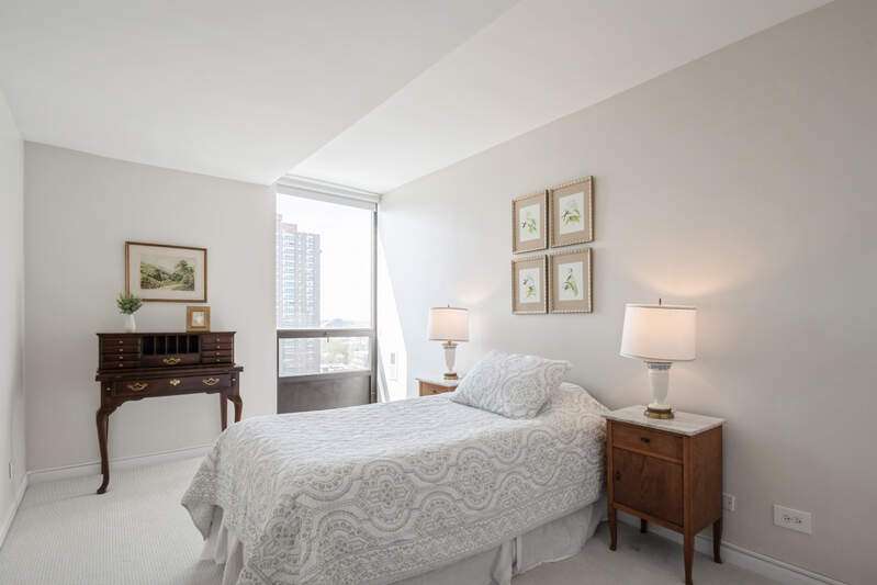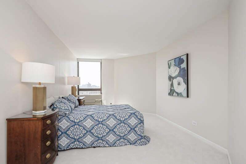 Luxury 2-bedroom / 2-bathroom unit with deeded garage parking at the Metropolitan - a full amenity high-rise building in Edgewater with expansive lake and city views. This unit was the building's sales model and features a living room with a recessed ceiling wired for accent lighting, gallery track lights, hardwood plank floors, floor-to-ceiling living room windows, and a balcony for outdoor dining. The kitchen and hall bathroom include updated cabinets, appliances, lighting, and tilework, and the primary bathroom and dressing area have a new designer vanity, faucet, mirror, lighting, and floor tile. The bedrooms have new upscale carpeting, ample closets, and operable windows with screens. The entire unit has been freshly painted. The architecturally striking, 25-story building is a northside landmark. It is managed by a 24-hour staff and its low assessments include the indoor heated pool, cardio and weight training equipment, outdoor tennis courts, interior bicycle racks, rooftop sundeck, and backyard grilling units. The building also has a large onsite laundry facility, a sizable business center with a private meeting room, and a well-appointed two-story atrium lobby. The Metropolitan is located across the street from the walking/bike path to Lincoln Park, the lakefront and Osterman and Foster beaches and a few blocks from the Loyola Chicago campus. The outer drive express bus stops in front of the building and the Berwyn and Bryn Mawr El stations are both 3.5 blocks away. Shopping and restaurants, including Mariano's, are across the street, and Jewel/Osco and CVS are 3 blocks away in the Broadway commercial district. The vibrant Argyle and Andersonville commercial districts are just a few blocks further south and west. No rental cap in the building. Association Reserves = $650,000. Owner pets are allowed with a 40lbs. limit. Multiple Parcels: PIN: 14082090221135: 2023 Condo Taxes = $2,791 PIN: 14082090221308: 2023 Deeded Parking Tax = $316.24 The assessment amount of $764 includes the monthly HOA and parking assessments. Electricity costs $37.67/month. Note: The unit is currentlly rented without parking for $2,650 per month. The deeded parking space is available for rent at the going rate of $200 per month.