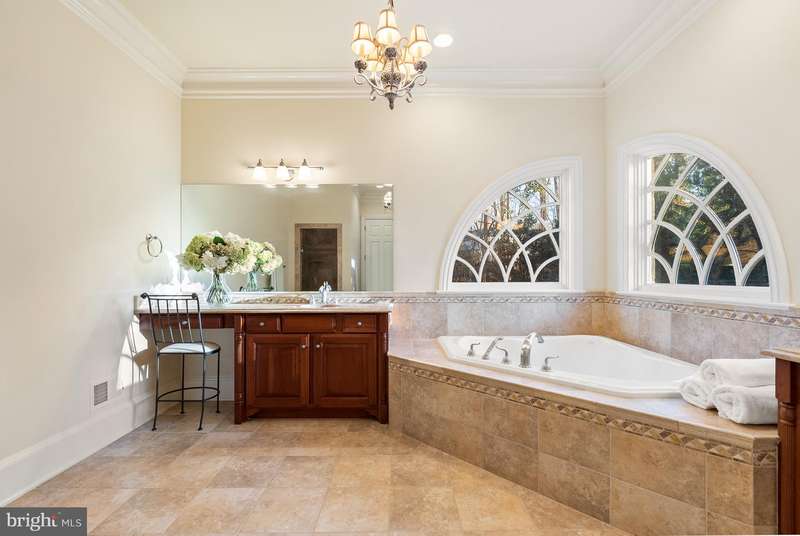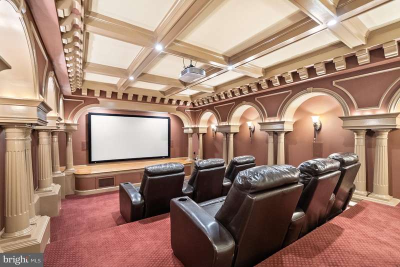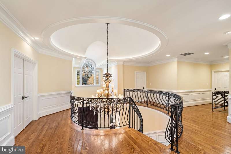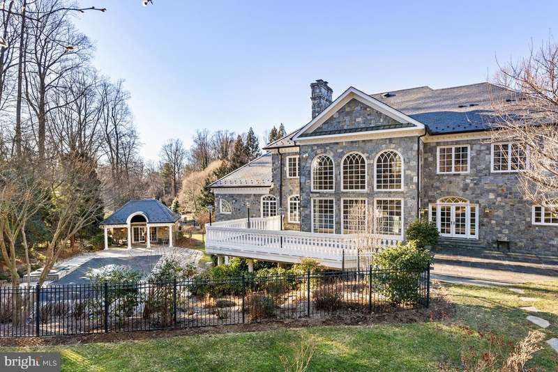 Welcome to 1221 Mottrom Drive. A Private Oasis in a Coveted Location. This spectacular estate, well over 12,000 square feet, is nestled in one of the area's most sought-after neighborhoods and crafted by renowned builder George Sagatov. Privately gated and set behind a circular driveway, the home makes an unforgettable first impression with its striking curb appeal, lush professional landscaping, and a sparkling resort-style pool. Step inside the grand two-story foyer, where a dramatic curved staircase sets the tone for the refined interiors that follow. The formal living room and banquet-sized dining room each feature their own fireplaces, elegant mantels, and arched doorways that add architectural charm. The heart of the home is the breathtaking great room with a floor-to-ceiling stone fireplace, coffered ceiling, and a wall of windows that flood the space with natural light and offer seamless access to the custom deck, perfect for indoor-outdoor living. The chefs kitchen features custom cabinetry, a large center island, two dishwashers, a built-in coffee maker, warming drawer, and a work desk area. Also on the main level is a richly paneled private office with built-ins and a fireplace, as well as a spacious main-level primary suite with a walk-in closet and luxurious bath complete with separate vanities. Two powder rooms and a well-appointed laundry room complete the main floor.Upstairs, the impressive owners suite is a true retreat with its own sitting room, fireplace, two generous walk-in closets, and a spa-like bathroom with separate vanities, soaking tub, and oversized shower. Three additional ensuite bedrooms provide comfort and privacy for family and guests. The walk-out lower level is an entertainers dream, featuring a fully equipped wet bar, wine cellar, state-of-the-art media room with tiered seating, a fitness room with sauna, a recreation room with stone fireplace, and an additional bedroom and full bath. Step outside to a true backyard paradise. The sparkling pool is complemented by a fully outfitted pool house with a full kitchen and bath, perfect for summer entertaining. Every detail of this home has been thoughtfully curated for luxurious living, all just minutes from the shops, restaurants, and commuter routes of Tysons Corner.