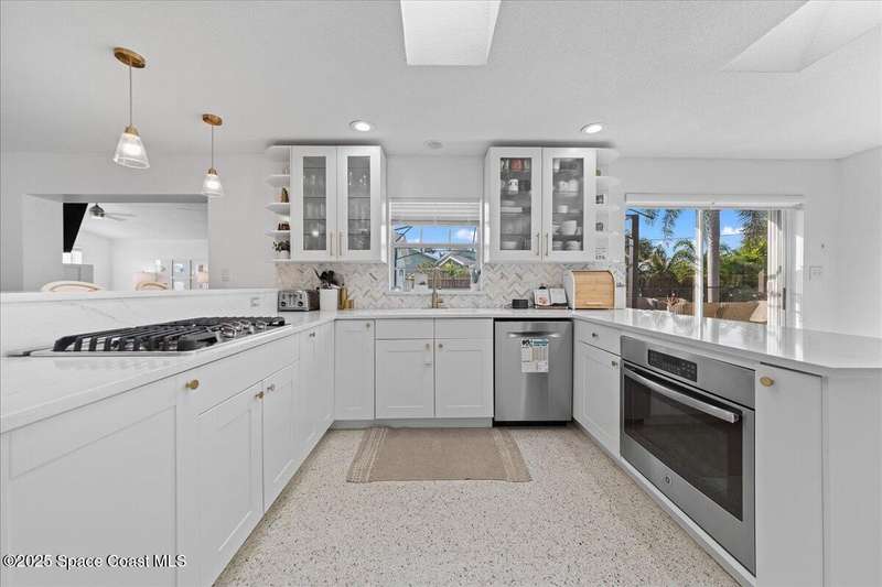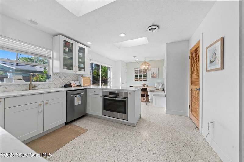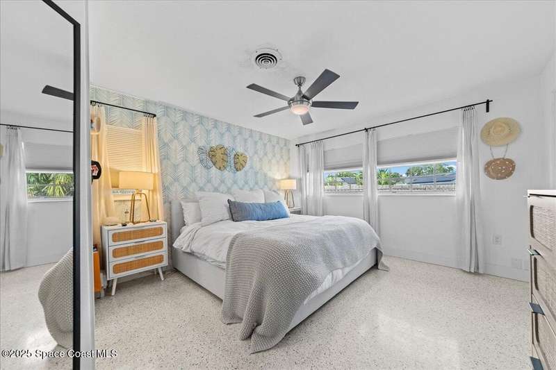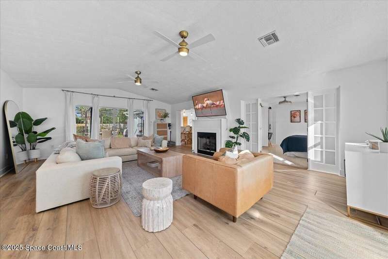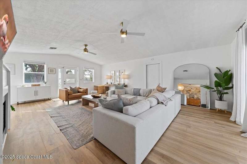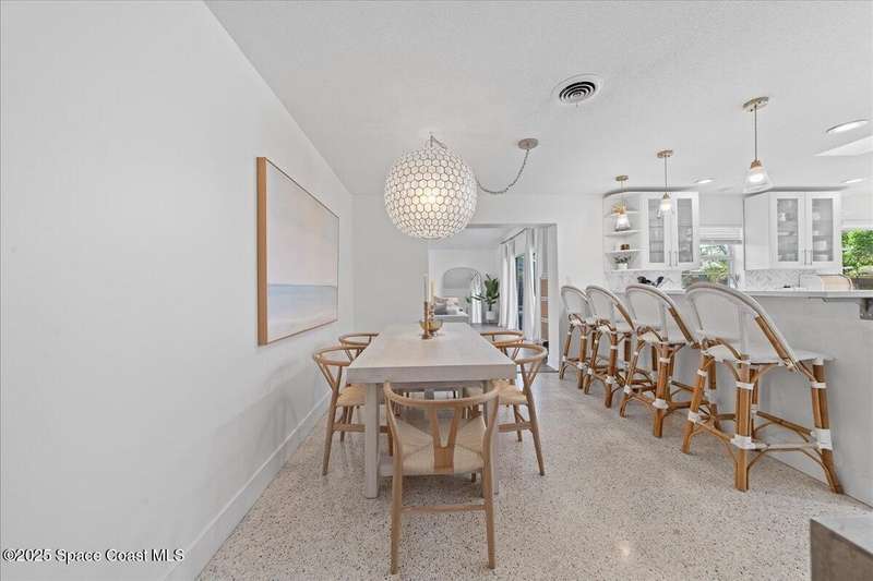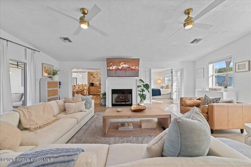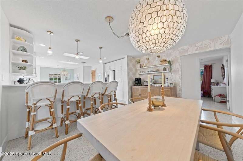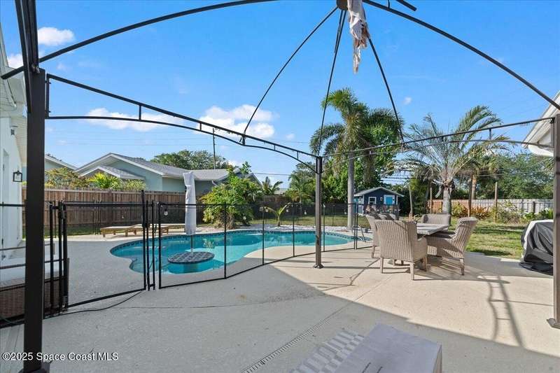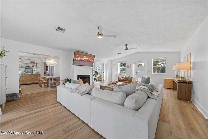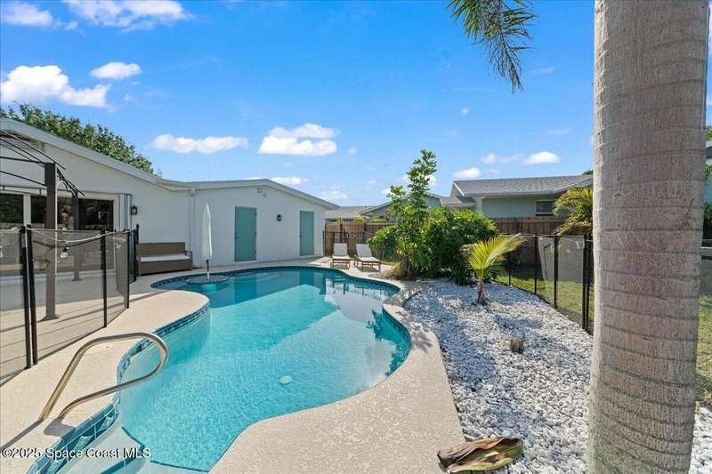 This 4 bedroom 2.5 bathroom home in Indian Harbour Beach literally has it all. Huge lot with inground, sparkling pool, cabana half bath, a 180 sq ft workshop. RV/Boat Parking, fully fenced and that's just the outside. When you enter through the new front door, you're left speechless by the massive great room with upgraded flooring, a fireplace focal point and cathedral ceilings. Other stand out features include polished terrazzo floors, a chef's kitchen designed by a renowned, local interior decorator complete with gas cooking, stainless appliances, quartz countertops, a marble backsplash and eat-in banquet seating. Enjoy peace of mind with a 2020 roof, 2023 panel and 2024 HVAC. Just minutes to the sand and the added option to short term rent make Indian Harbour Beach attractive to all buyers.