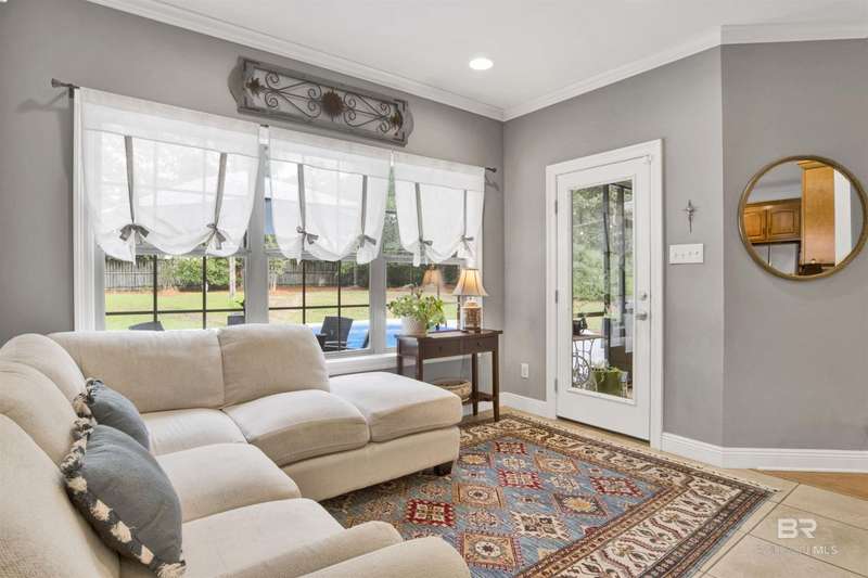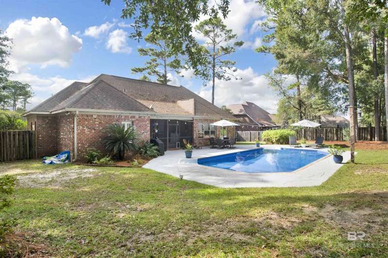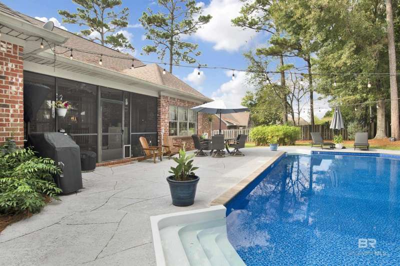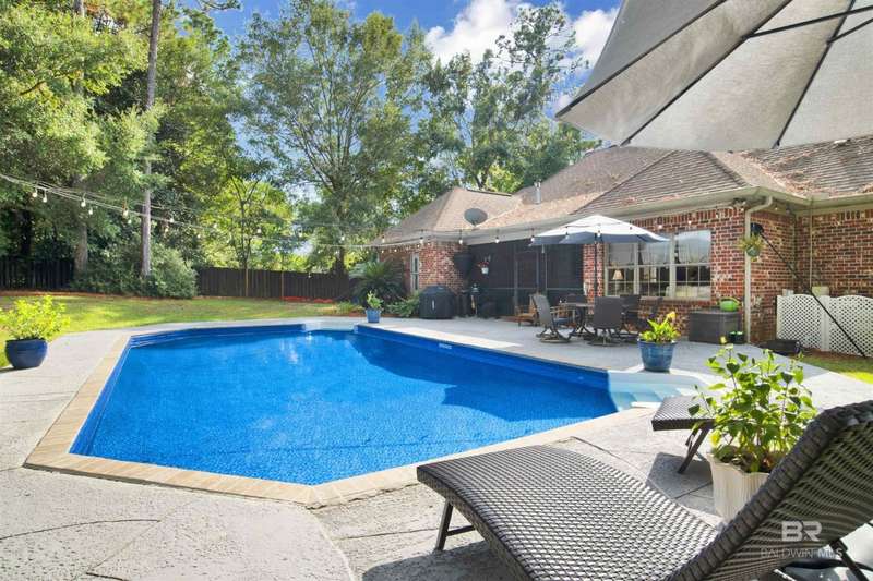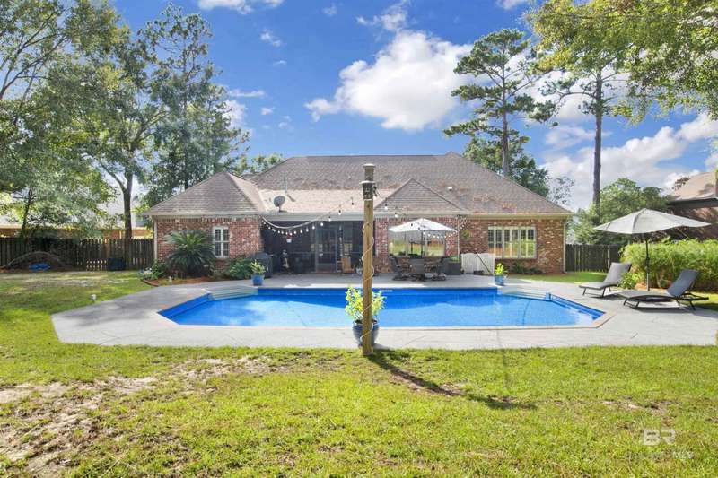 Quality build- custom brick 4-bedroom, 3.5 bathroom with Bonus Room and saltwater POOL with NEW liner, polaris and brick coping pool surround. 2 new HVAC's 2025 and 2023. The floorplan of this well-maintained home is sure to please with plantation blinds throughout. The spacious living room has a gas fireplace and is open to the dining room, breakfast room, and kitchen bar with large windows overlooking the screened porch and huge fenced backyard and pool area. In the kitchen you will find granite countertops, stainless and black appliances and a kitchen island - plenty of counter space! The primary bedroom is graciously sized with loads of windows to allow the natural light when desired and has beautifully crafted trey ceiling. Primary bathroom has double vanity with his and hers walk in closets with separate soaking tub and shower. The other 3 bedrooms are on the opposite side of the home along with 2 full baths. Utility room and another half bath downstairs along with a spacious dining room. Upstairs you will find a huge bonus room that could be a media room, playroom, man cave, office, you name it! Back yard has room for your boat, RV or a pool house! Spanish Fort Estates has a voluntary HOA and is conveniently located close to shopping and I-10 for easy commutes. This home has everything you've been looking for! Schedule a time to see it Buyer to verify all information during due diligence.