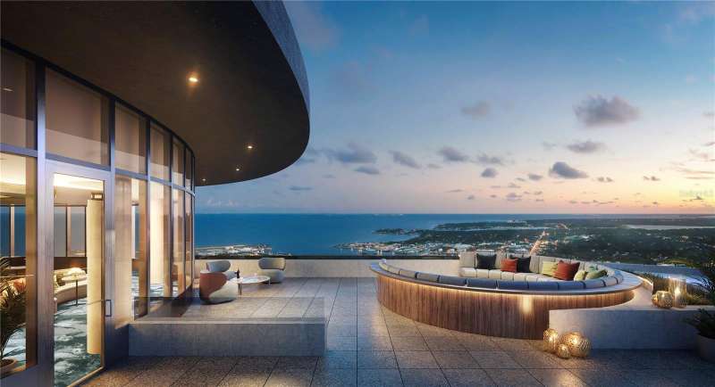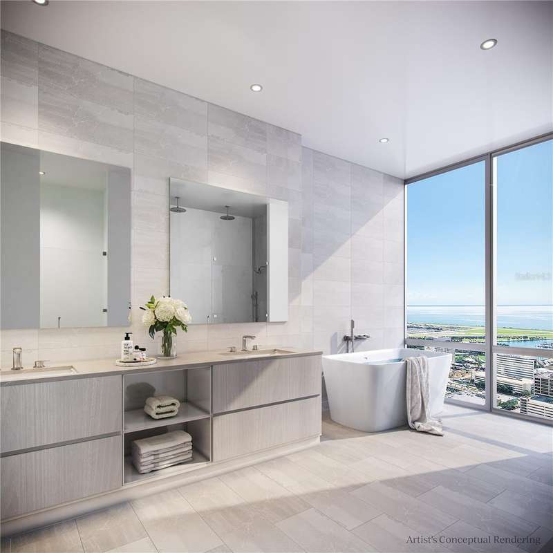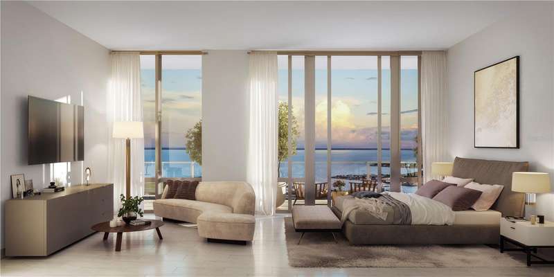 Under Construction. Sky Collection designed by the award-winning firm Arquitectonica, with interiors and amenities by New York’s Celano Design Studio, this exclusive penthouse spans the 44th and 45th floors of 400 Central. With 12' ceilings and expansive walls of glass, this 3-bedroom, 3.5-bath home is bathed in natural light. The oversized terrace runs the length of the residence on both levels, offering breathtaking panoramic views from the great room and every bedroom. The gourmet kitchen features European-style cabinetry, quartz countertops, a wine fridge, and a high-end Thermador appliance package with integrated refrigerator, freezer, and dishwasher. The luxurious owners' suite includes an oversized walk-in closet and a spa-inspired bath with dual sinks, a shower with a bench, and a soaking tub. On the 7th level, enjoy over 36,000 square feet of indoor and outdoor wellness amenities, including a theater lounge and private dining room. Relax by the resort-style heated pool or in the state-of-the-art fitness center, or unwind in the zen garden or poolside cabanas. The 46th-floor Sky Lounge and Observatory offers unparalleled 360-degree views of the city, Tampa Bay, and the Gulf of America. Residences at 400 Central showcases a maintenance-free, lock-and-leave lifestyle in the vibrant heart of St. Petersburg.