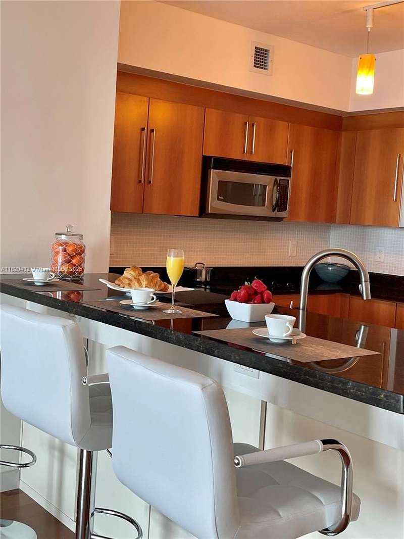 Enjoy unobstructed water views and breathtaking sunsets through floor-to-ceiling windows and the balcony from this sun-drenched 1145 sqft 2/2 residence with multiple customized closets. Hardwood floors throughout and custom European kitchen with wide granite breakfast counter. Enjoy the beautiful amenities that One Miami has to offer, close distance to Whole Foods, Top restaurants, the famous Bayfront Park, Brickell City Centre and the heart of the financial center. 10-min drive to Miami Beach/ South Beach.