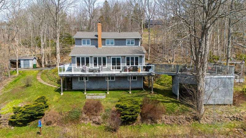 This spectacular 4 bedroom, 2.5 bath home is nestled on 3.3 acres of south facing land on the bluff above Centreville. Experience panoramic valley views and tranquil outdoor spaces, including the wrap around balcony that feels like you are sitting in the trees. Southern exposure gives passive solar through the ample south facing windows. Wood stove insert and central heat pump provide plenty of heat. Attached double garage and detached garden shed/wood shed supply plenty of storage. Great location on the North Mountain. The home offers a lower level walkout from the fourth bedroom downstairs, while the other three bedrooms, including the primary are upstairs. Office on the main level. 200 Amp electrical entrance. Pool table is negotiable.