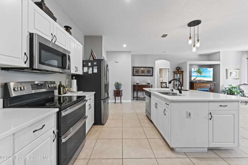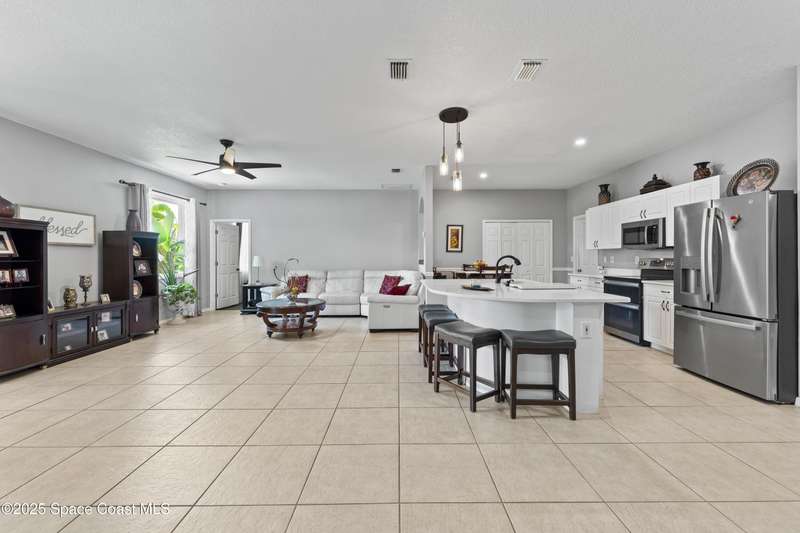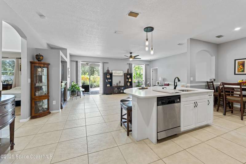 This Holiday-built home features a bright, open floor plan and a spacious family room with an entertainment alcove. Major updates include a newer roof (2020), water heater (2020), HVAC (2017), and energy-efficient Solar Zone windows (2014). Bedrooms feature updated carpet (2020), while the rest of the home offers sleek porcelain tile floors. Bathrooms have been updated. The eat-in kitchen boasts a breakfast bar and brand-new quartz countertops, flowing into the family room for easy entertaining. Outside, enjoy your newly paved back porch, perfect for relaxing or gatherings.