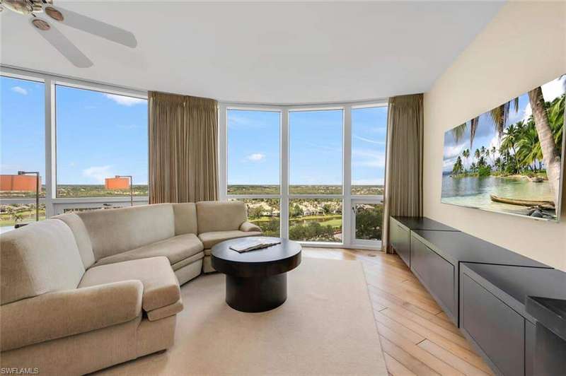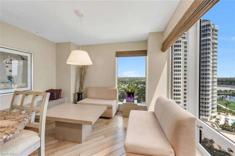 Turnkey-Furnished Modern Zen Retreat with Gulf & Bay Views. Welcome to Estancia 1201 in Bonita Bay-a serene 3-bedroom, 3-bath Zen-inspired retreat designed to help you reset, reconnect, and embrace nature's rhythm. This beautifully furnished 12th-floor residence combines minimalist design with rich textures and natural materials for a warm, sophisticated feel. Enjoy breathtaking views of Estero Bay and the Gulf of Mexico through expansive floor-to-ceiling windows. The open-concept layout features Brazilian walnut flooring, bespoke millwork, sleek lighting, and a soothing neutral palette. The modern kitchen is both functional and inviting, with high-end appliances, wood cabinetry, and a sunlit breakfast nook. The primary suite is a spa-like haven with ambient lighting, a soaking tub, and dual closets. A private second en-suite bedroom with plantation shutters and a reading chaise offers comfort for guests, while the third bedroom doubles as a media room with a built-in Murphy bed. Unwind on the screened lanai, perfect for sunset views or outdoor entertaining. Residents enjoy luxury amenities: a resort-style pool and spa, saunas, a fitness center, guest suites, and 24-hour security. Located in Bonita Bay, this home includes access to 12+ miles of walking trails, a private beach park, marina, and optional club membership with championship golf, tennis, dining, and wellness. Modern luxury meets nature's embrace-your retreat awaits.