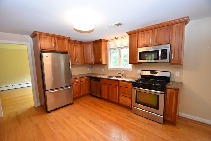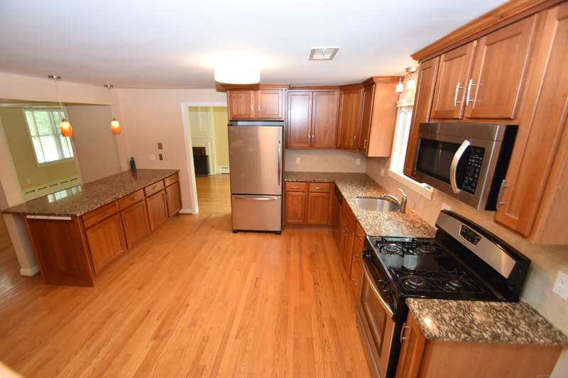 Location, Location, remodeled Cape Cod property. This home features a first-floor primary bedroom suite and an open kitchen/dining room layout, complete with a breakfast island, granite countertops, and stainless steel appliances. The spacious living room extends from front to back and includes a wood-burning fireplace. On the second floor, you'll find two bedrooms and a full bathroom. The lower level offers a large entertainment area with another wood fireplace and access to a garage. The property boasts a generous open yard and includes two garages-one located at the driveway and another on the lower level around back. Conveniently situated near the Village of South Glastonbury and the surrounding farming community, this location is also within a short distance of the Town Grange swimming pool and Cotton Hollow Preserve. A truly inviting home in a desirable area!