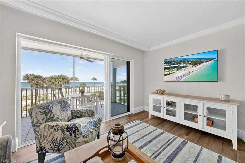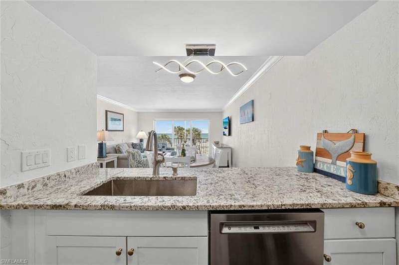 Welcome to your island retreat in the heart of South Seas Resort. This fully renovated one-bedroom getaway sits on the second floor and is offered turnkey furnished-ready to enjoy or share as a proven rental performer. The light-filled open layout showcases coastal-inspired finishes, including luxury vinyl flooring, updated countertops, stainless steel appliances, a spacious double-wide sink, and modern LED lighting. Thoughtful upgrades create a balance of comfort and style, perfect for both relaxing escapes and effortless entertaining. Hurricane-rated sliding doors frame sparkling Gulf views and lead to your private screened lanai-your front-row seat for sunsets and sea breezes. Ideally positioned on the coveted South End of the resort, you're only moments from Captiva Village, where boutique shops, Starbucks, and iconic dining spots await. Beach Villas amenities include community grills, a heated pool, and tennis/pickleball courts, blending recreation with relaxation. Whether you're seeking a personal sanctuary, a smart investment, or both-2623 Beach Villas is a true Captiva treasure.