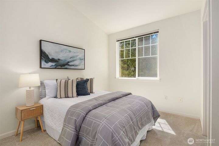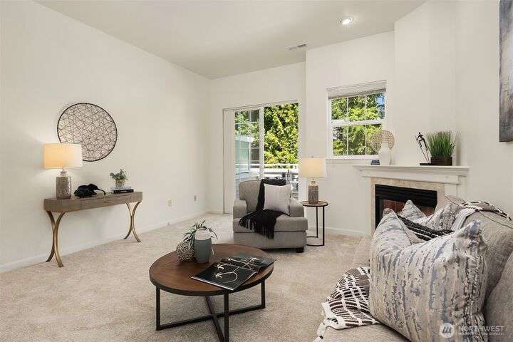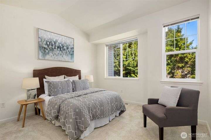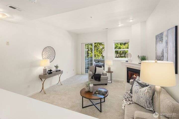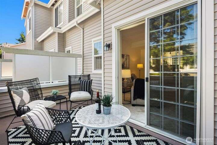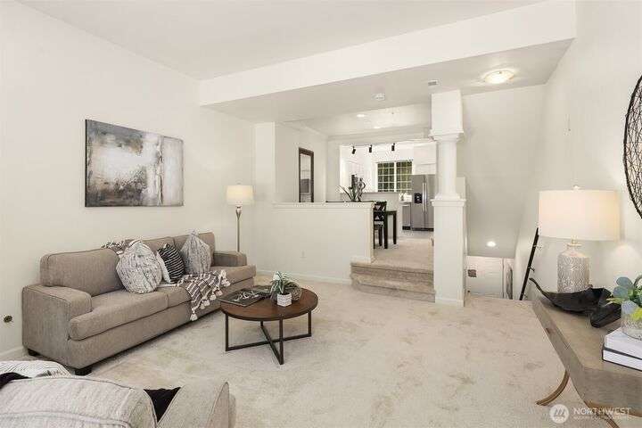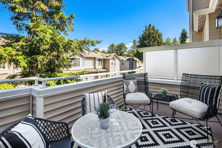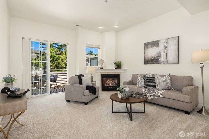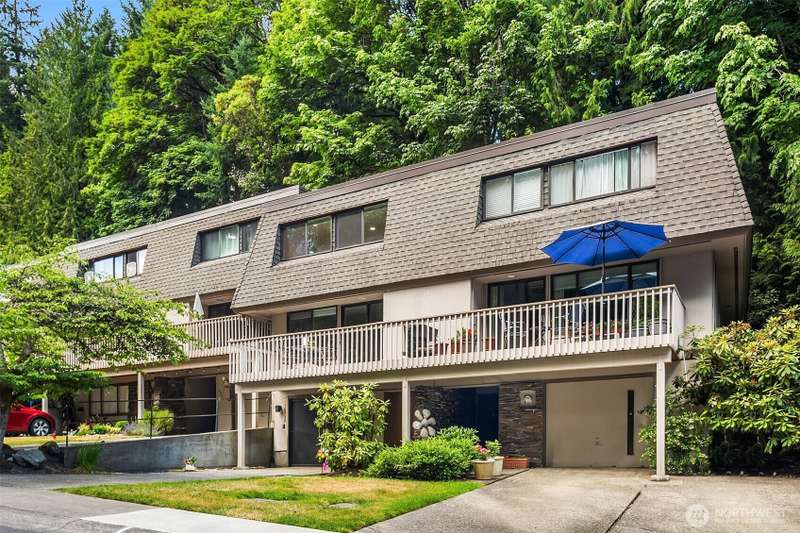 Bright, bold & recently remodeled, this Chic Woodridge townhome dazzles w/ soaring ceilings, sun-filled windows & stylish, refreshed finishes. Open floorplan concept w/easy ktchn/dining & living rm flow featuring a cozy gas frplce as a focal point. Newly refreshed ktchn boasting sleek quartz counters, new stainless-steel appliances & new fun flooring. Two spacious ensuite bdrms offer comfort & privacy, while the expansive deck invites dining, lounging & entertaining. With fresh paint, new carpet, flooring & lighting + ktchn & bths already done, you can move right in as the work & investment has already been made here. Attached 1-car garage. Top rated Bellevue schools. Ideal location minutes from I-90, 405 & downtown Bellevue. No rental Cap.