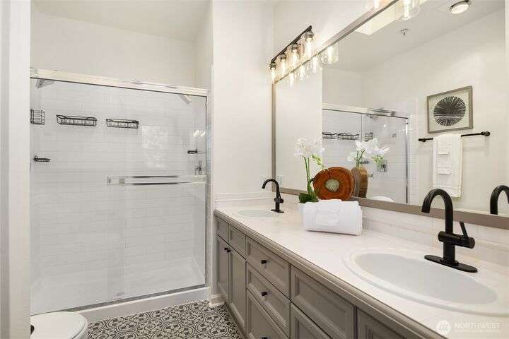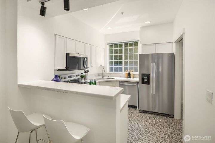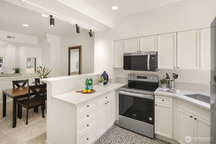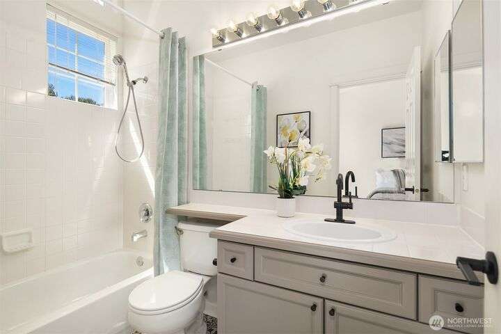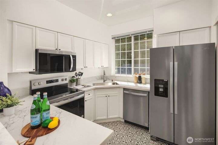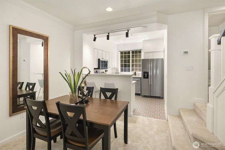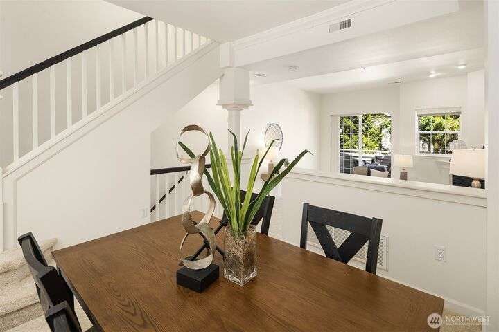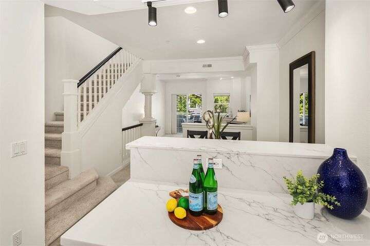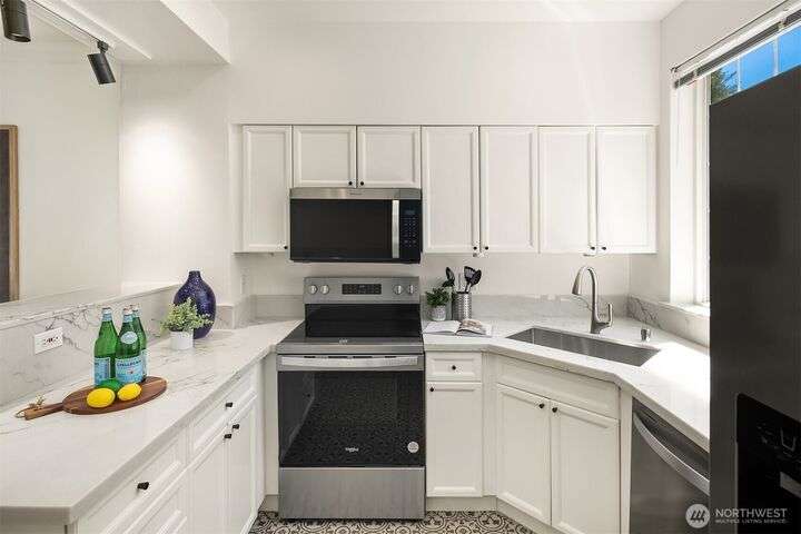 Bright, bold & recently remodeled, this Chic Woodridge townhome dazzles w/ soaring ceilings, sun-filled windows & stylish, refreshed finishes. Open floorplan concept w/easy ktchn/dining & living rm flow featuring a cozy gas frplce as a focal point. Newly refreshed ktchn boasting sleek quartz counters, new stainless-steel appliances & new fun flooring. Two spacious ensuite bdrms offer comfort & privacy, while the expansive deck invites dining, lounging & entertaining. With fresh paint, new carpet, flooring & lighting + ktchn & bths already done, you can move right in as the work & investment has already been made here. Attached 1-car garage. Top rated Bellevue schools. Ideal location minutes from I-90, 405 & downtown Bellevue. No rental Cap.