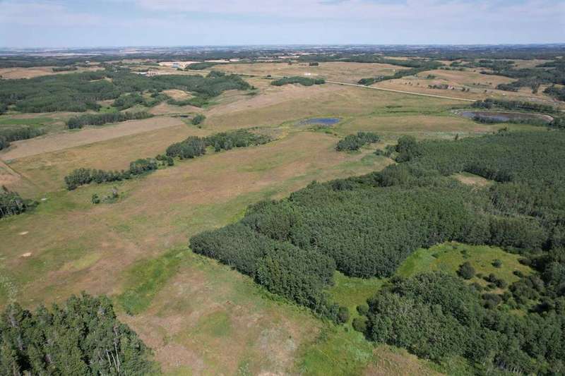 Excellent un-subdivided quarter section of native pasture land on Highway 816 close to Pine Lake. Good grass and natural water sources for livestock. Large treed and open areas with fantastic recreation, wildlife viewing, and hunting (deer & moose) opportunities. Perfect parcel of land to build your dream home and yard site right off pavement and close to the lake, golf course, gas station/convenience store, and around 20 minute drive into Red Deer.