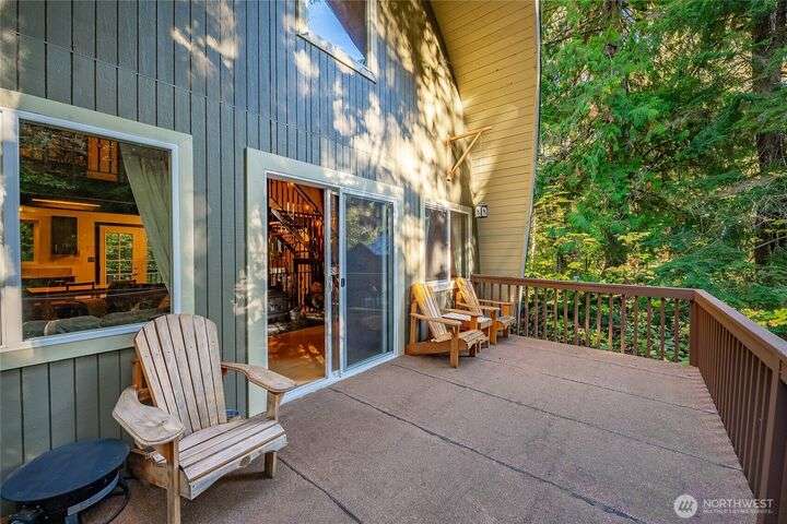 Welcome to this classic Gothic Arch cabin. 2 large private decks, custom metal handrails & stairs, bamboo floors, vaulted fir ceilings, slate tiled downstairs walk in shower, newer French doors for access to the back deck & woodshed. Owner is currently using extra rooms as a total 4 bedrooms, hot tub plug &pad ready for yours. 2 year old roof. Comes furnished. 30 minutes to Mt. Baker and amazing hiking in Mount Baker-Snoqualmie National Forest. $1200 annual HOA includes pool, sauna, clubhouse, tennis courts, picnic/play areas, snow removal, and full-time management. Fiber optic service available. 1% lender credit up to $7500 offered through my preferred lender, AmyBaker@movementmortgage.