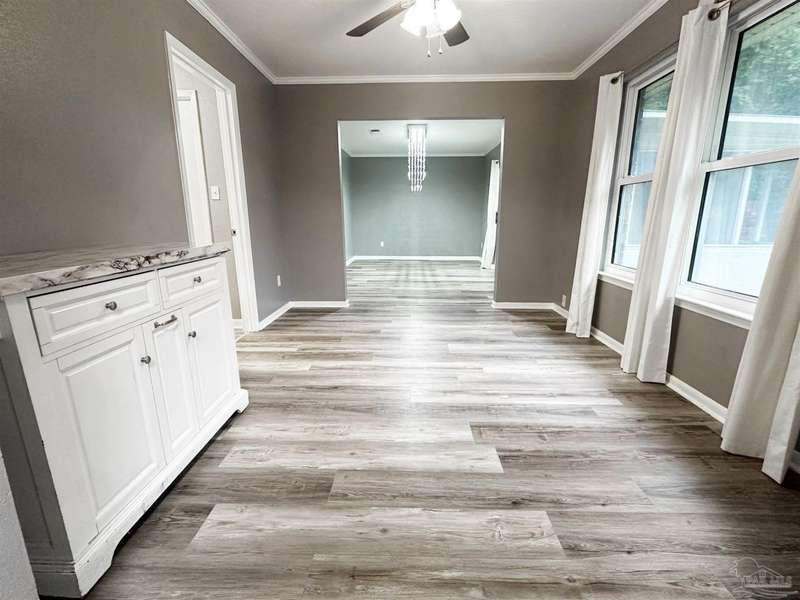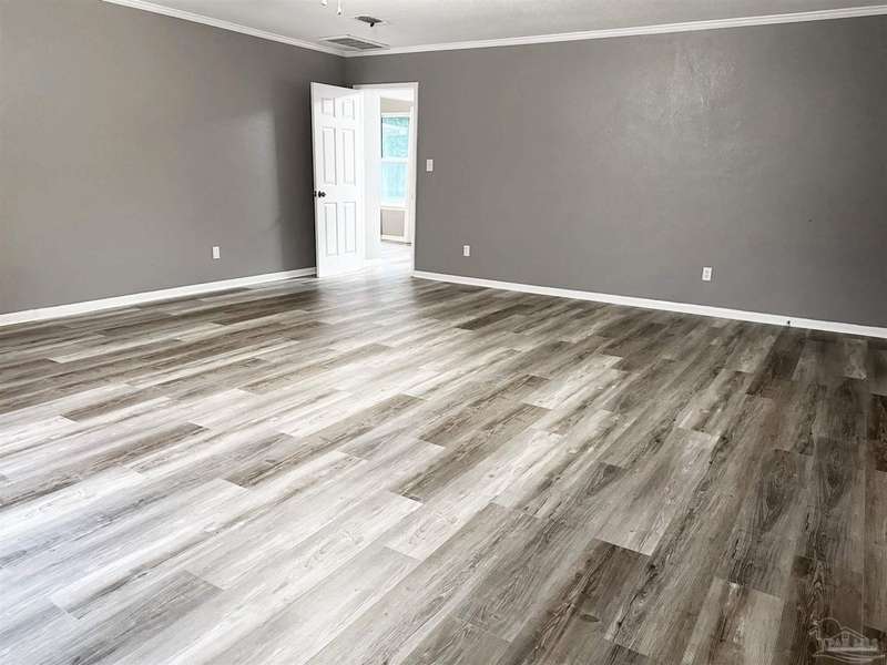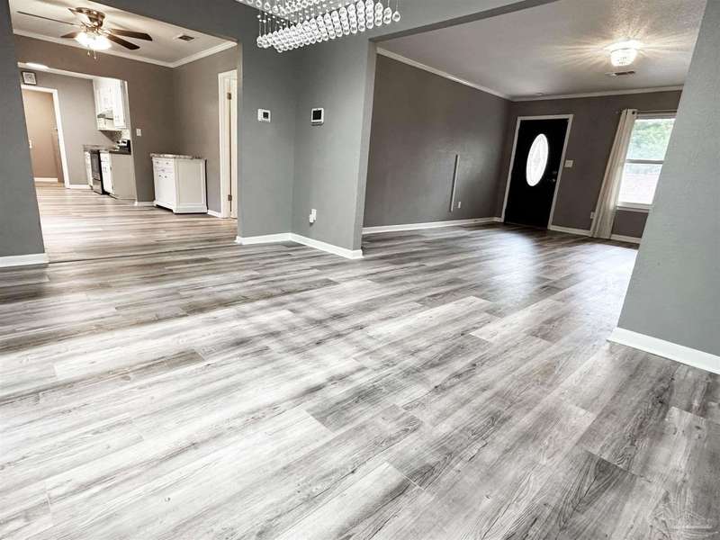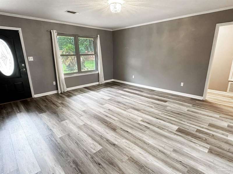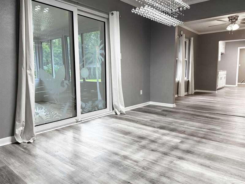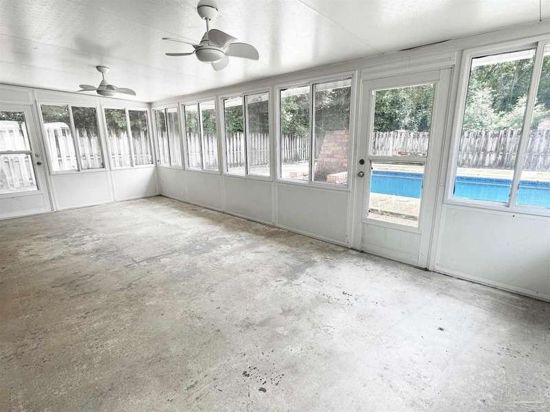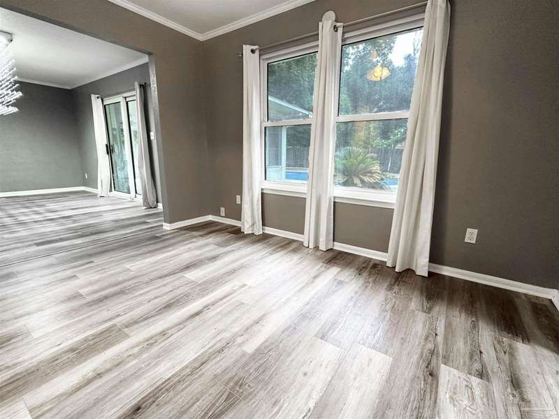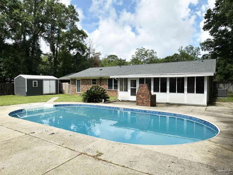 Welcome to this move-in ready 3-bedroom, 2-bath brick home that offers both comfort and convenience being located just minutes from schools and shopping. Situated on a generous 1/3 acre lot with a circular driveway and a 1-car garage, this home has great curb appeal and functionality. Inside, you'll find vinyl plank flooring throughout, creating a clean, cohesive look. The open-concept living space flows effortlessly from the living room into the dining areas and kitchen. Just past the dining area is a flexible space that could be utilized as breakfast nook, office space or sitting area, all while staying connected to the heart of the home. One of the standout features of this home is the 25 x 14 flex space; perfect for a family room, media room, game room, or even a 4th bedroom. The split floor plan provides privacy, with two bedrooms and a full bathroom with updated tile shower on one side, and the primary suite with its own private bathroom on the opposite end. Both bathrooms are updated with granite countertops, offering style and durability. The outdoor space is a Florida dream come true with an inground swimming pool ( new liner and sand filter 2023) and 14 x 12 enclosed sunroom, ideal for relaxing year-round or hosting poolside get-togethers. The spacious backyard with plenty of green space is fully fenced and includes a large storage shed. Major systems were replaced in 2022, including the roof, HVAC, and water heater, giving you peace of mind and lower maintenance for years to come. This spacious home combines everyday comfort with lifestyle extras, come see it for yourself!