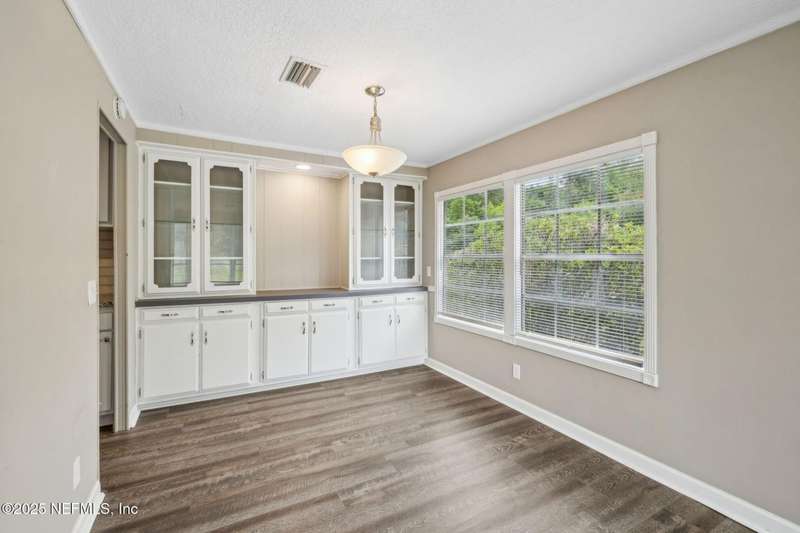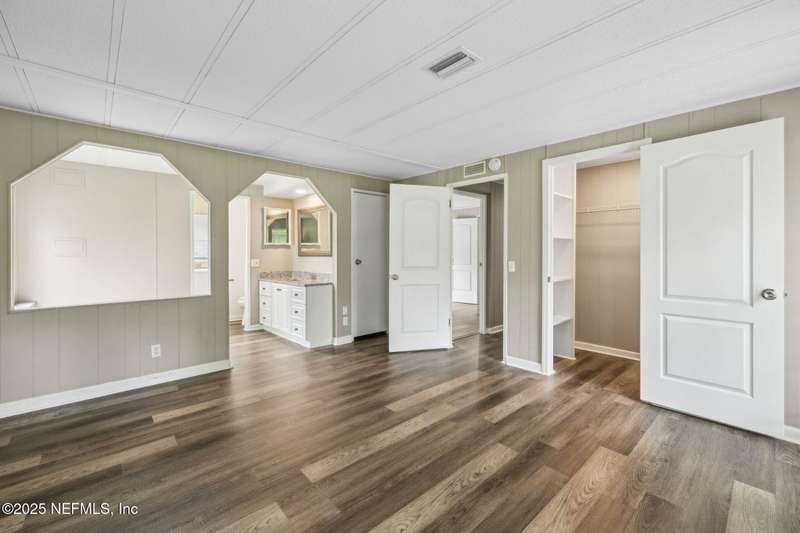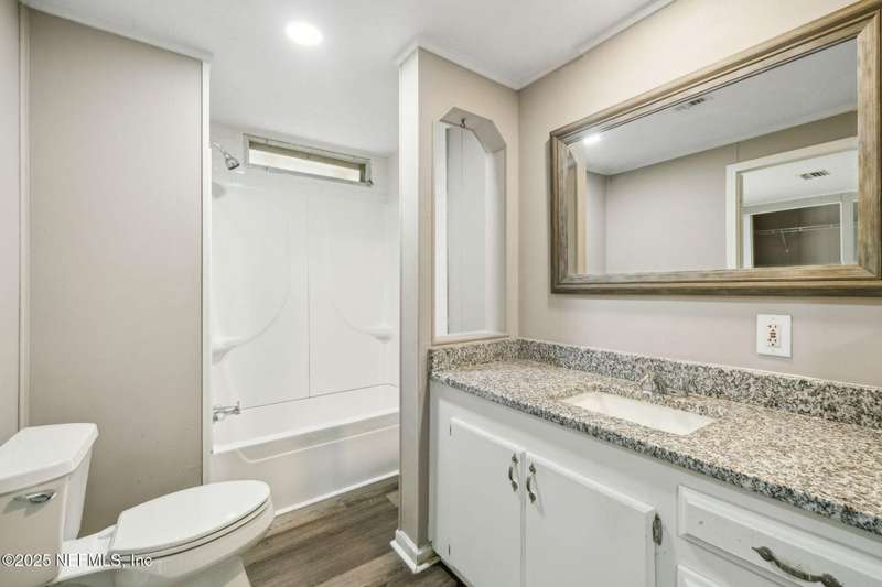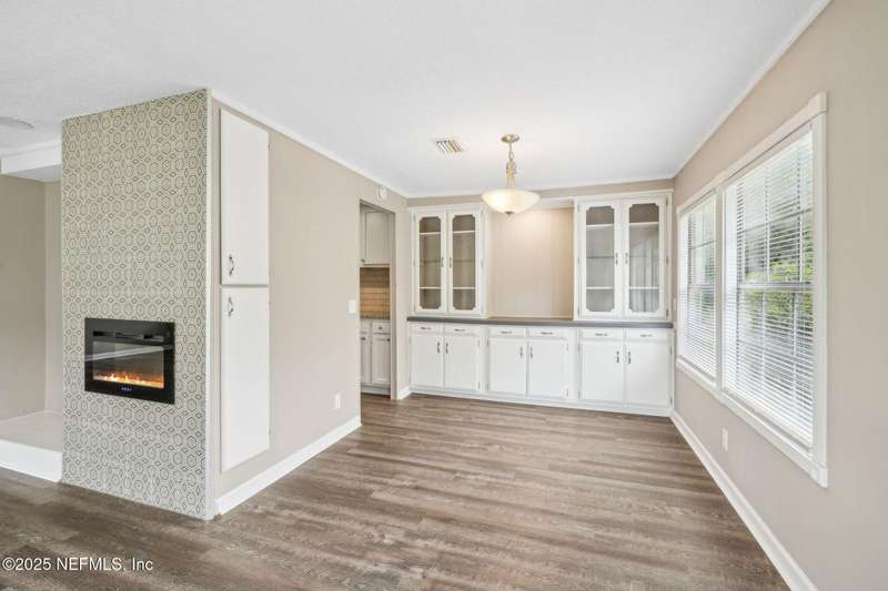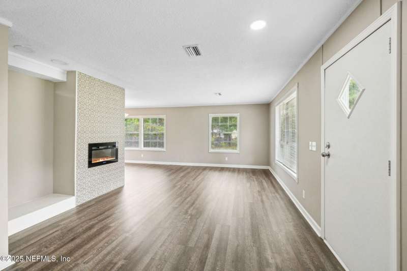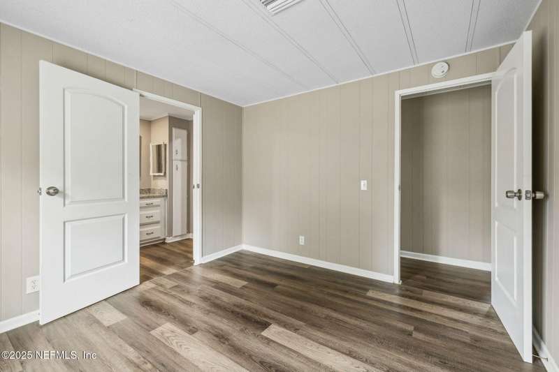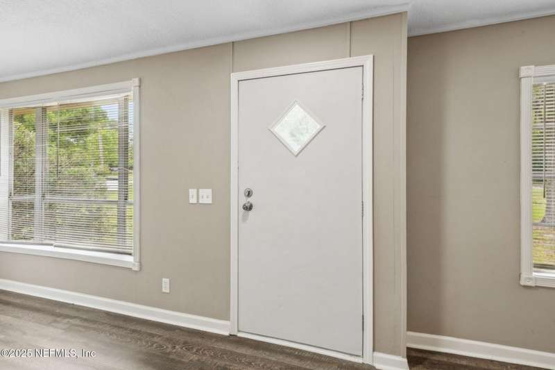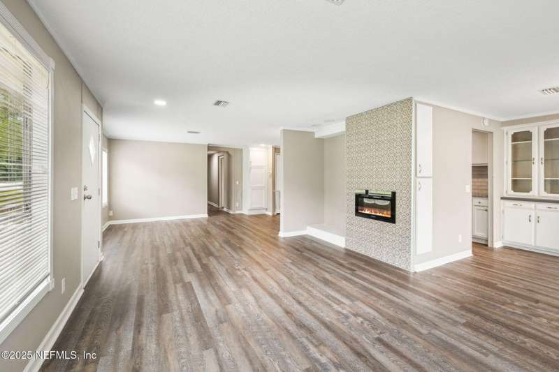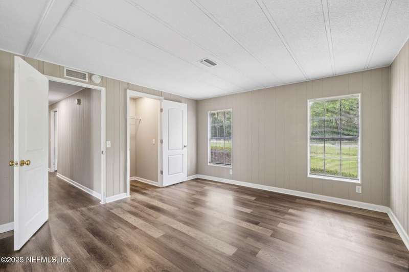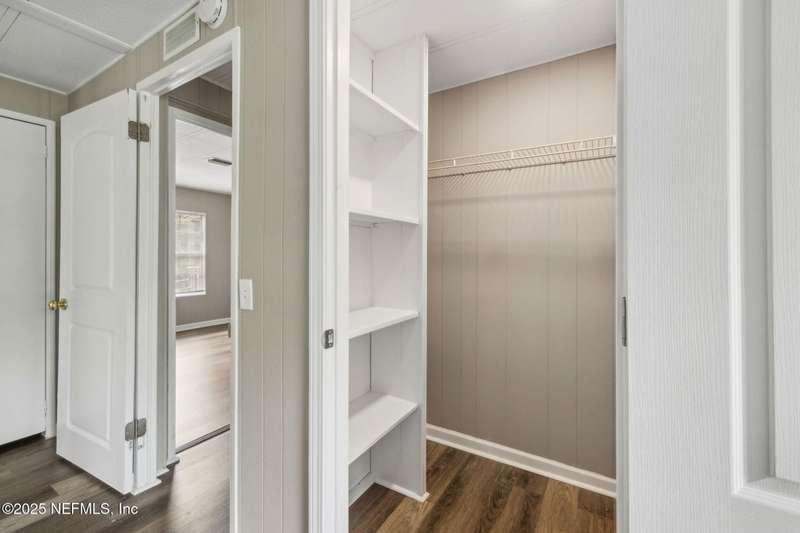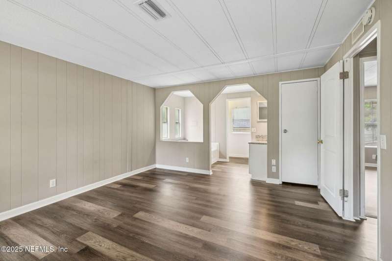 Country Living with City Convenience! This charming 3-bedroom, 2-bath, 1,452 SF double-wide mobile home sits on a spacious 1/2-acre corner lot in desirable Clay County near Doctors Lake. Enjoy peaceful surroundings with easy access to shopping, dining, and major roadways.The open-concept living and dining areas are filled with natural light. The cozy living room features an electric fireplace with a built-in heater, while the dining room includes a convenient built-in hutch. The kitchen is well-equipped with GE stainless steel appliances, white shaker-style cabinets, granite countertops, a breakfast bar, a stylish glass tile backsplash, and an undermount stainless steel sink.The spacious owner's suite offers a private retreat with an ensuite bath featuring a garden tub, separate shower, and granite vanity. Two additional bedrooms share a well-appointed hall bath with granite countertop.Waterproof vinyl plank flooring runs throughout the home with moisture barrier underlayment. Interior freshly painted in 2022. Newer 50-gallon electric water heater. Private well and septic system in place.Outdoor features include a covered back deck with a wheelchair-accessible ramp and a fully fenced 1/2-acre yard with chain-link fencing. A detached 2.5-car concrete block garage includes an automatic opener and a newer, permitted roof.Cash only.