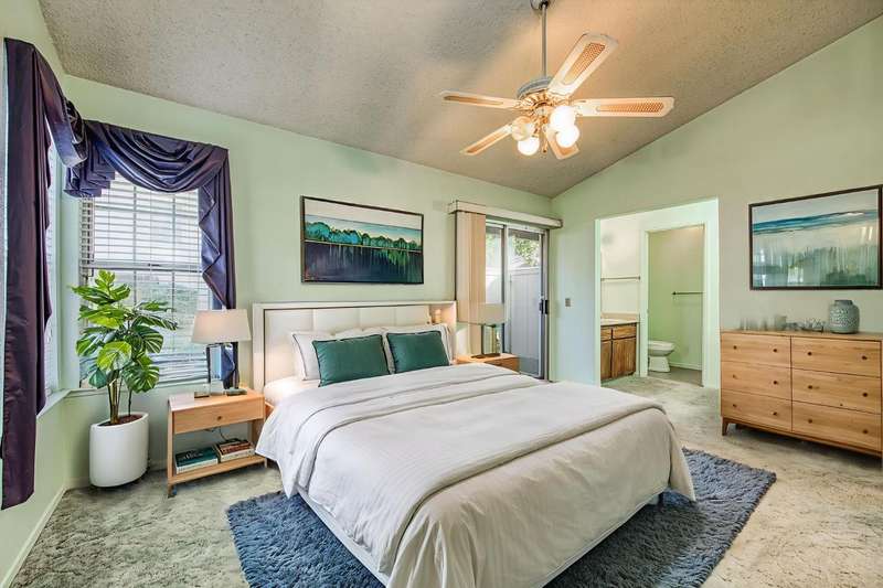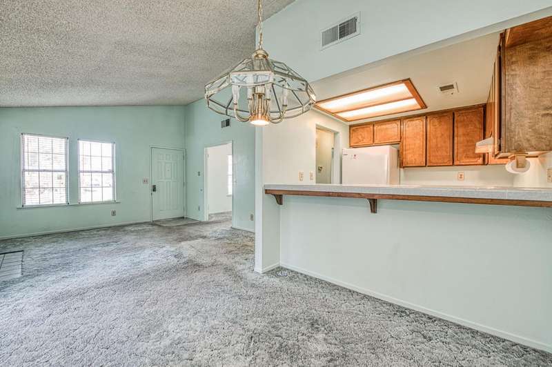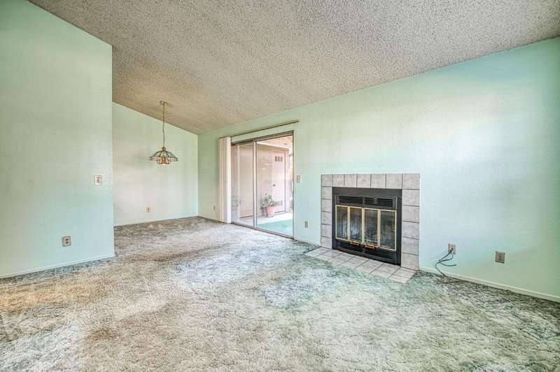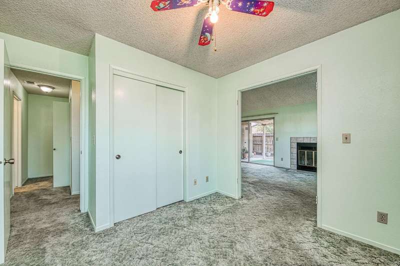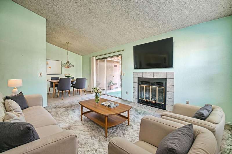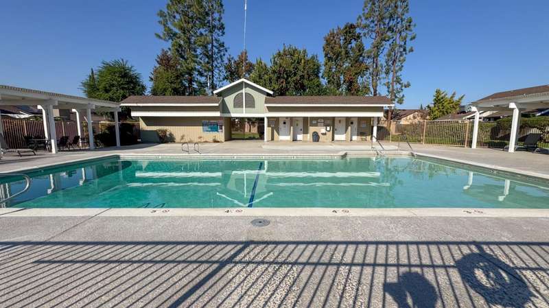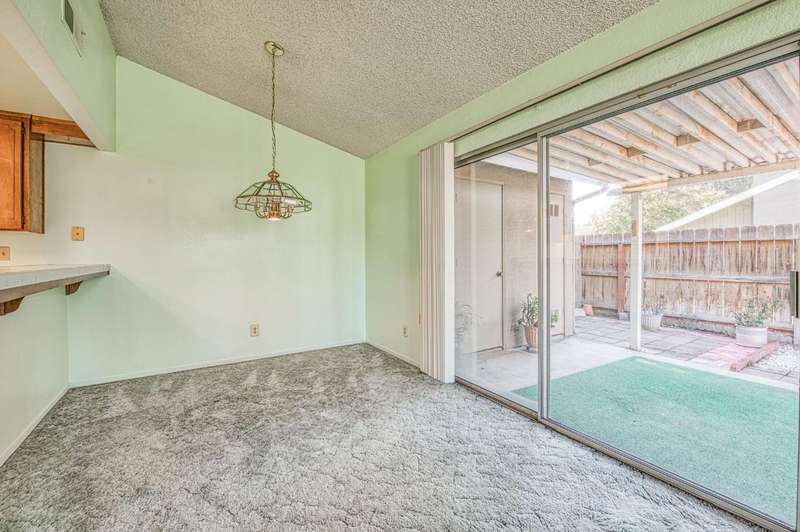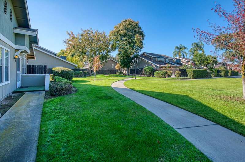 Welcome to Sunrise Meadows, a pet-friendly gated community located in one of Fresno's most desirable zip codes, 93711. This Planned Unit Development (PUD) home offers views of a beautifully maintained green space and walkway, and is conveniently located near the community pool. It is one of the few FHA approved communities.With some cosmetic updating, this unit has great potential, and it is priced accordingly. The functional floor plan features a main living area that opens to the breakfast nook and kitchen. The home includes two bedrooms, two bathrooms, and an indoor laundry closet with a washer and dryer. The kitchen comes with a refrigerator and has an adjacent breakfast nook with a sliding glass door leading to a private patio. With no direct neighbors behind or in front of this unit, you can enjoy a private space to relax. This home is ideally situated within the community and is close to a detached one-car garage. The roof is covered by the HOA, which also provides access to community amenities such as a sparkling pool, beautiful green spaces, and secure gated access with camera surveillance.