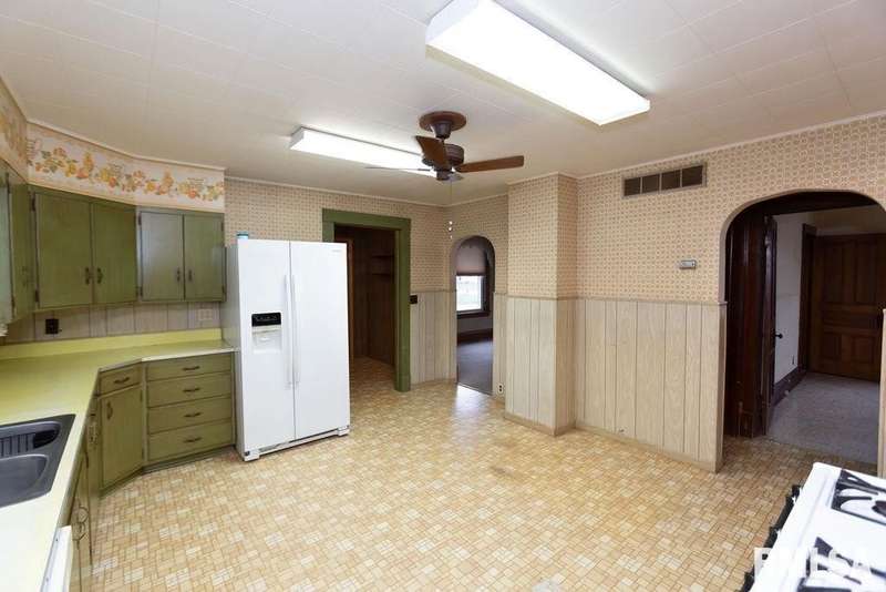 4-bedroom home located in the heart of Roanoke, IL. This property boasts a 2.5-car attached and heated garage and includes two additional parcels, totaling approximately 1.5 acres in a park-like setting. The home retains great character with a wooden banister on the staircase, original wood trim, and arched doorways. Functionality is also enhanced by abundant storage, small walk-in closets, and two laundry hookups (one in the basement and another in the breezeway connecting the house to the garage). A summer kitchen in the basement adds further potential. New shingles, complete tear off, as well as siding in 2024. SOLD AS IS