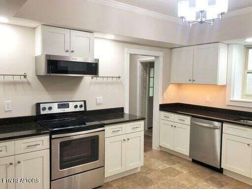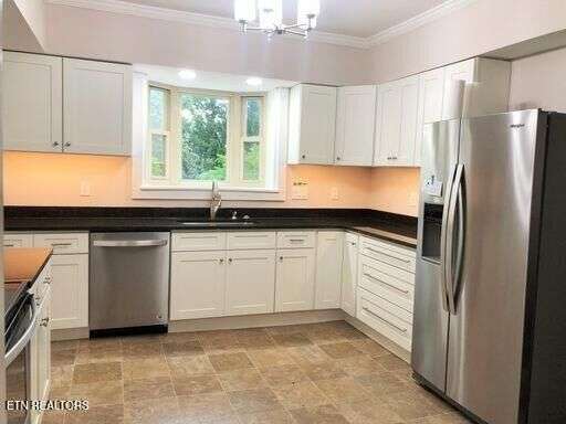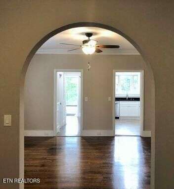 .Enjoy style and charm in this gorgeous expansive townhouse apartment. This majestic townhouse apartment offers three levels of living. On the main level enjoy entertaining in the totally updated kitchen with newer appliances and counter tops. Or sit down for a formal dining experience in the separate dining room which is accented by arch doorways. Sit back and relax in the glassed wall sitting room that exits to a private balcony through double glass sliding doors. Fireplaces are decorative only. Full finished basement is perfect for the older student or family member. The walk out basement consists of a living area, bedroom, full bath, and laundry room. Shared backyard, mailbox, driveway and parking with east side of home. Basic lawn care is included. Conveniently located to downtown Knoxville and multiple shopping and entertainment areas.