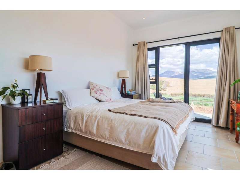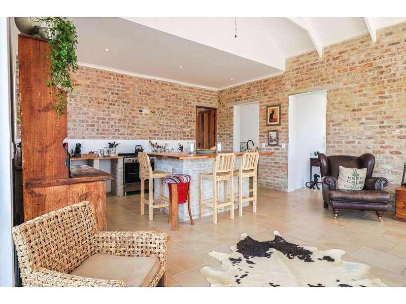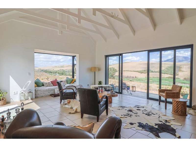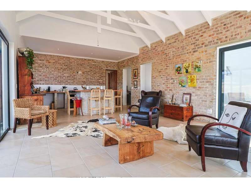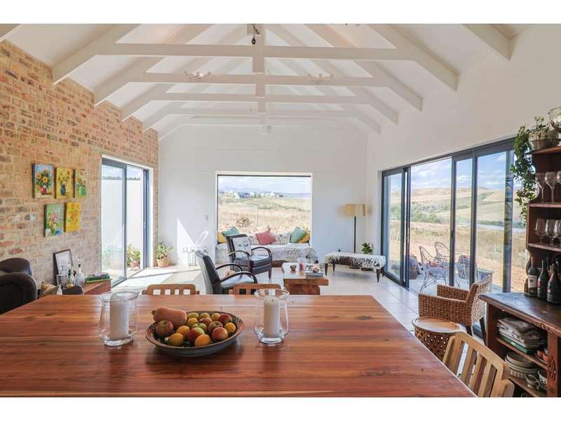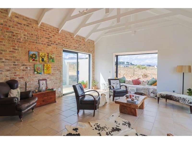 Immaculate, modern residence in a secure country estate with magnificent views over the hills and river. With its double-volume ceilings and large windows, the home is bathed in natural light, creating a bright and airy atmosphere. Key Features include: Four bedrooms and two bathrooms: Perfect for families or those who enjoy hosting guests. One of the bedrooms is currently used as a practice and has a private entrance. Open-plan living area: Ideal for entertaining and spending time with loved ones. Large windows : providing breathtaking views of the natural surroundings. French wood and Knysna black wood finishes: Add a touch of warmth and elegance to the kitchen and bathrooms. Secure estate: Provides peace of mind and a sense of community. Imagine waking up to the serene views of nature, gathering with friends and family in the open-plan living area for an evening and relaxing on the terrace and soaking in the breathtaking scenery. This stunning home is the perfect place to unwind and enjoy the peace and beauty of nature. With its modern amenities and spacious layout, it offers a comfortable and convenient lifestyle for you and your loved ones. Ideal for horse and dog lovers - plenty of open spaces for walking, running or horse-riding!