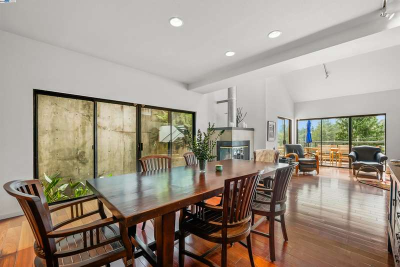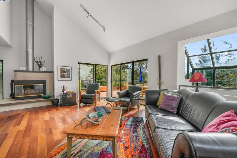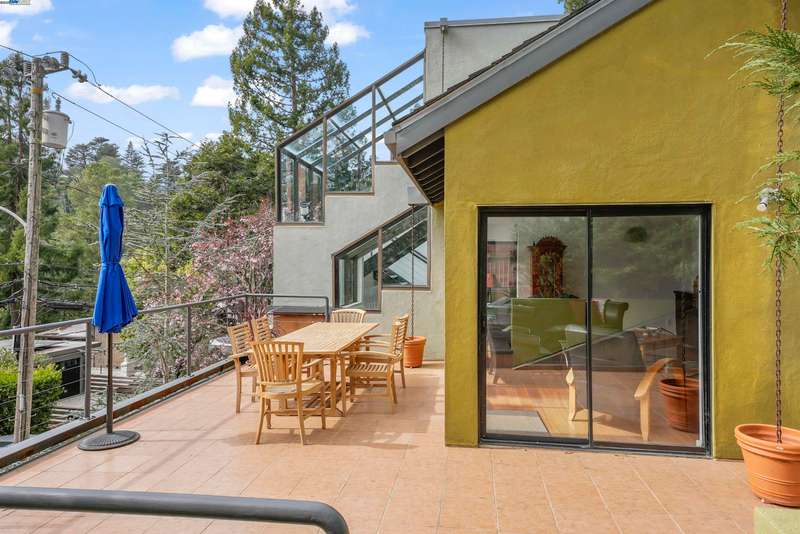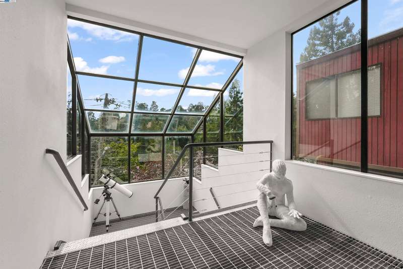 Impressive architecturally modern home located in the Oakland Hills near Montclair Village has several noteworthy features reflecting thoughtful architectural design. Thick concrete walls create passive temperature regulation throughout the year. The window placement facilitates natural ventilation allowing heat to dissipate quickly during warmer months. This combined with strategically placed skylights and grated landings,allows abundant natural light despite having portions of the home built into the hillside. The home includes redundant systems (two furnaces, air conditioning systems, and water heaters), three gas fireplaces, and an outdoor grill connected directly to the natural gas line for convenience. To further its uniqueness, the property includes a koi pond that supports goldfish that have been thriving for years, creating a self-sustaining ecosystem requiring minimal maintenance. The location provides easy walking access to Montclair Village is via the Montclair Railroad Trail. Access to grocery stores, banks, and other necessary amenities and social activities such as the local farmer market are just minutes away. 5 local regional parks provide walking and biking trails with many having spectacular Bay Views. All this and so much much more.