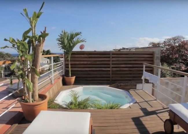 The house is very bright due to its glass window above the indoor pool. The home is equipped with a modern kitchen, 4 bedrooms, 2 bathrooms with shower, A/C, wifi, with 2 parking spots. The house has 2 large terraces, one with a jacuzzi and a view of the city.