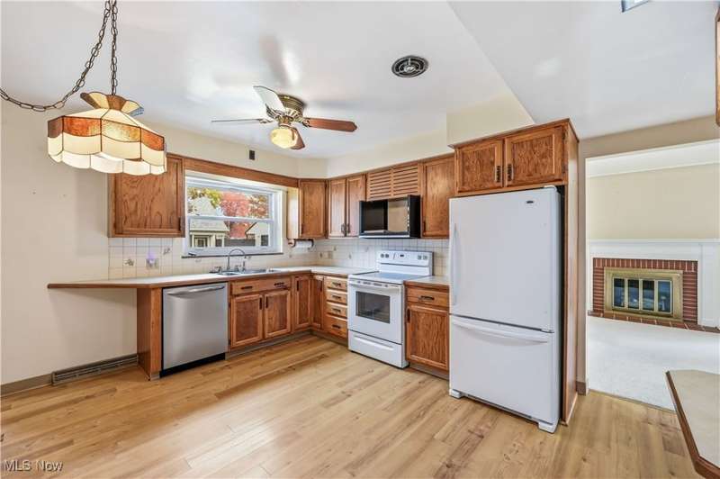 Welcome to this charming 4- Bedroom Cape Cod on a Large Corner Lot, offering timeless character and modern comfort. This lovely 4 bedroom residence features: Inviting living space with a cozy gas fireplace, large windows allowing plenty of natural light-the perfect spot for relaxing or entertaining. A sunroom, with abundant windows - Enjoy your morning coffee or a comfortable place to enjoy cool evenings. Beautiful hardwood floors throughout the home, some rooms are carpeted, but all are original wood. Warm and inviting kitchen complete with all appliances and eating area. The one full bath was completely remodeled with granite and updated fixtures, tile floors and beautiful warm vanity. On the upper level, owners converted the attic space to another large bedroom with carpet and a heater. Another area in the attic is plumbed for a full bath, the light is to the right of the door with a pull-down chain. Basement has a knotty pine bar, shower and sink, workbench and plenty of storage.Owners used a 'Rain Barrel Rainwater Harvesting System, see folder in the home. 2 car detached garage with large work space/storage room, and brand new garage doors.Call now before it is gone!
