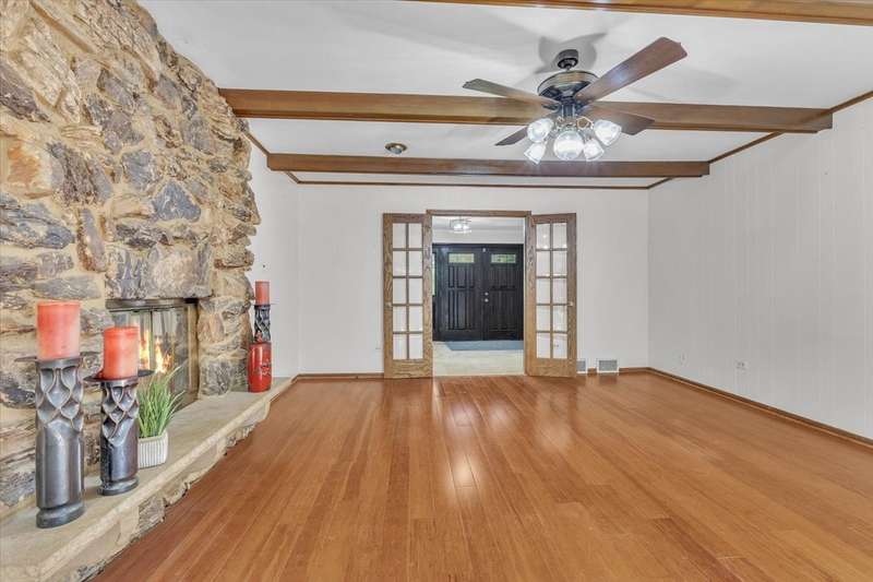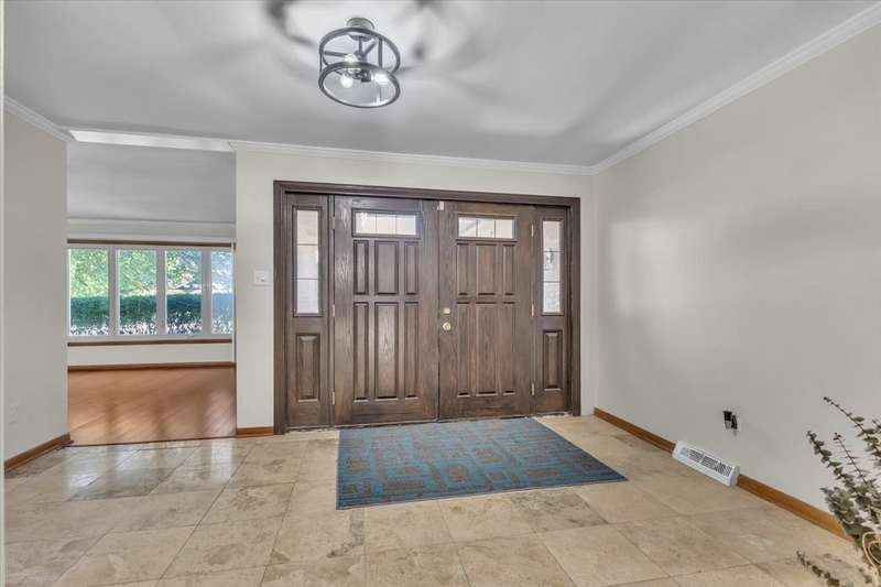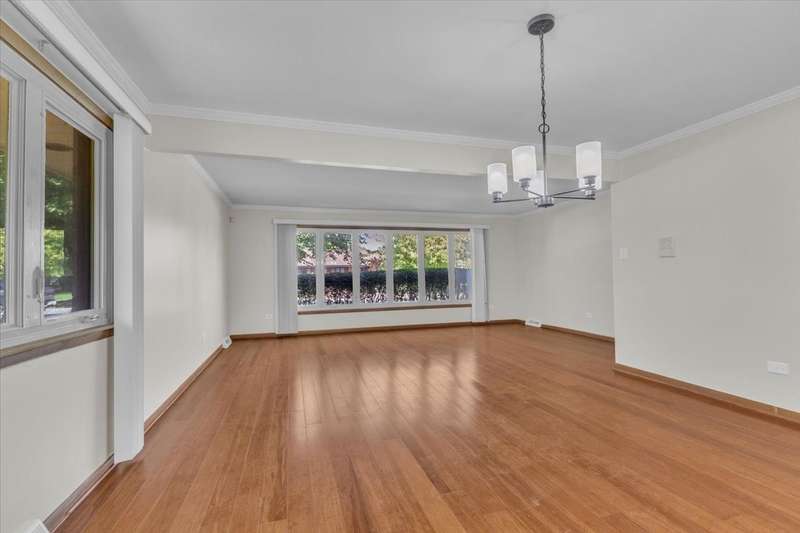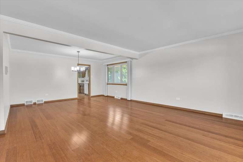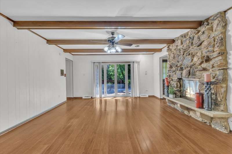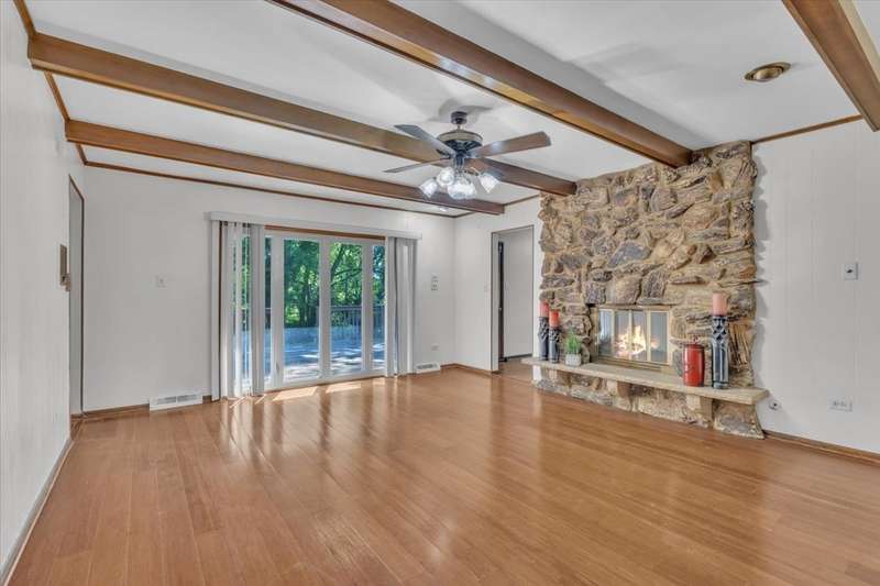 Welcome to this GORGEOUS BRICK RANCH HOME w/ 2.5-car attached garage and well over 2,000 sq. ft. of Finished Living Space! Offering 3 Bedrooms and 2.5 Baths, this home blends character, space, and solid mechanical improvements. Beautiful HARDWOOD FLOORS extend through much of the main living areas, including a spacious Dining Room and light-filled Living Room with oversized windows. The Primary Suite features its own bath and walk-in closet, while the show-stopping Family Room boasts a dramatic BEAMED CEILING, COZY FIREPLACE, and wall of oversized windows framing the BACKYARD OASIS. Relax and enjoy stunning views of the wooded forest preserve right from home. Peace of mind w/Roof under 10 years & NEW FURNACE, A/C, and SUMP PUMP.