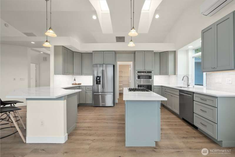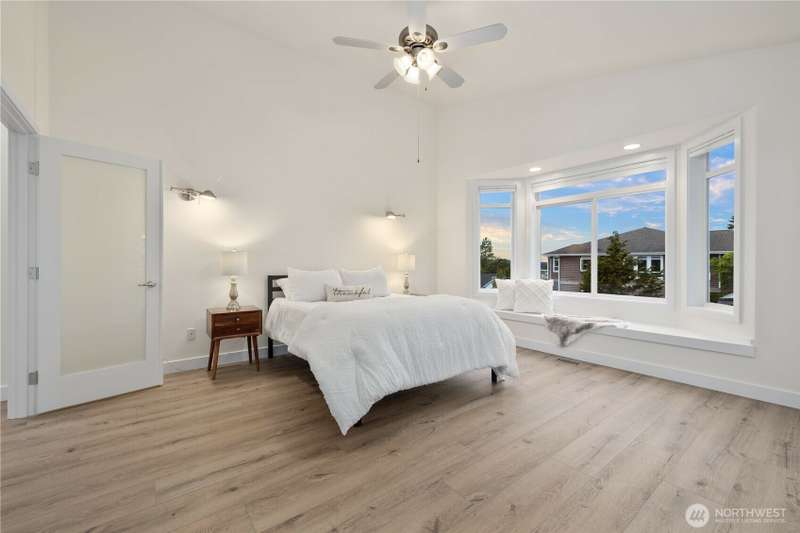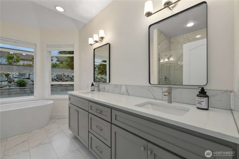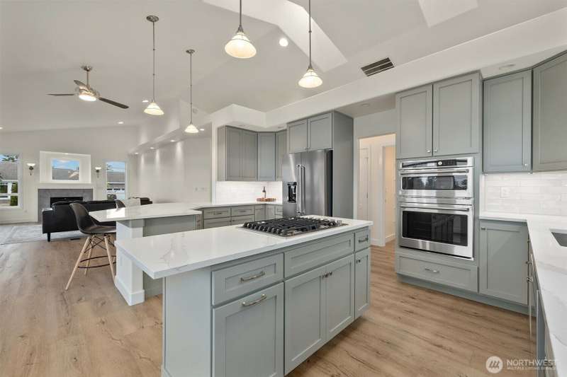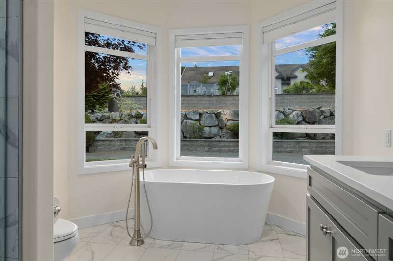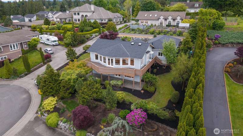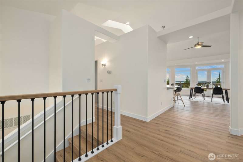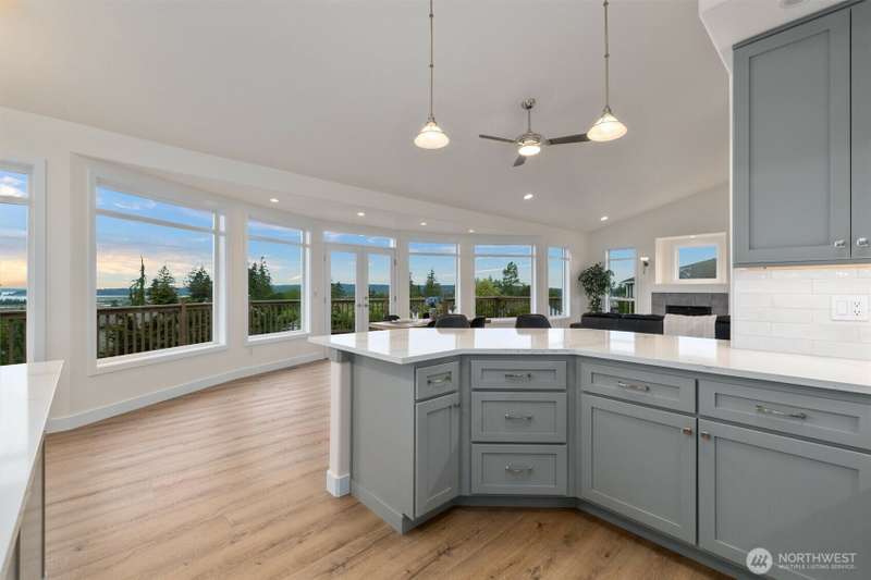 ~ Sit back and enjoy the view ~ Perched on an upscale hillside, this thoughtfully updated home enjoys panoramic views of the bay & Olympic Mountains. The open-concept kitchen/living is a chef’s dream — soak in the seascapes while using the stainless steel appliances, expansive quartz countertops, and ample cabinets. On the main floor, the primary suite welcomes you through French doors with a walk-in closet and elegant 5-piece bath. Downstairs offers a spacious flex space, 2 beds, den, ¾ bath, and utility room. Outside, enjoy sunsets on the Trex deck or shaded patio below for peaceful solitude. The large garage has 3 bays and a workspace, the perfect home for all your projects. Tucked away but connected, elevate your everyday.
