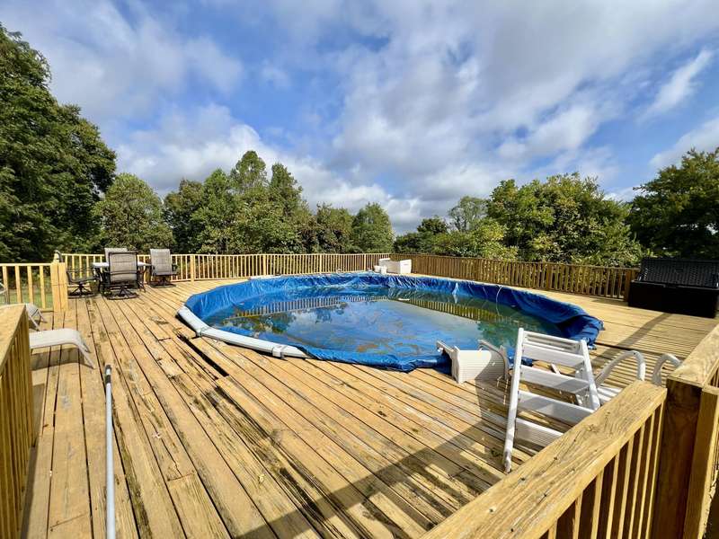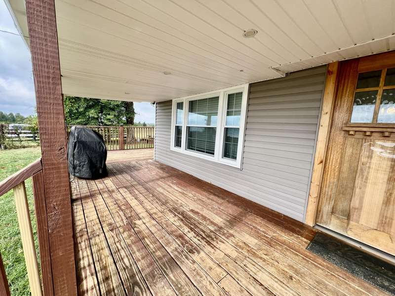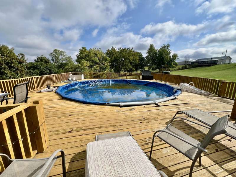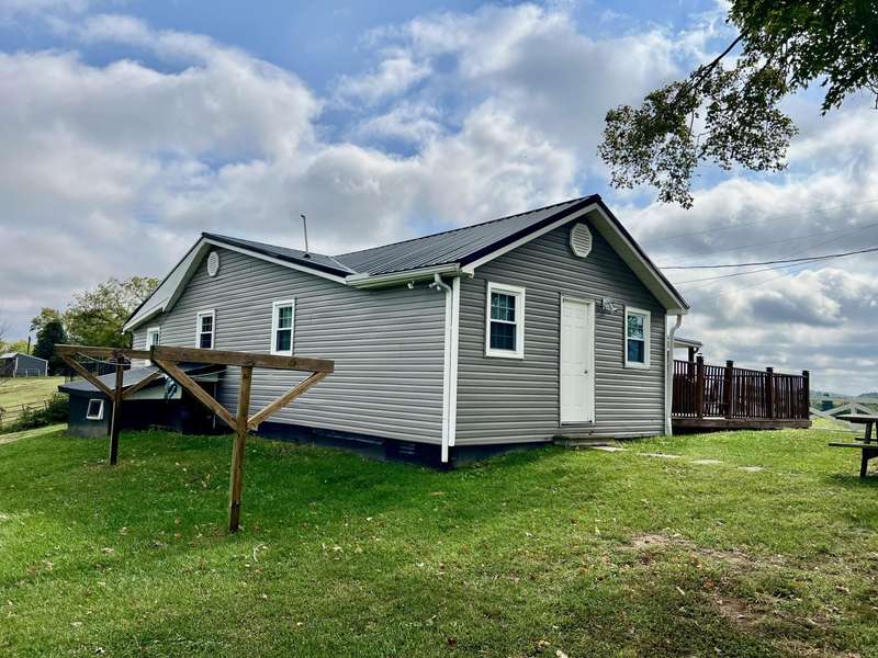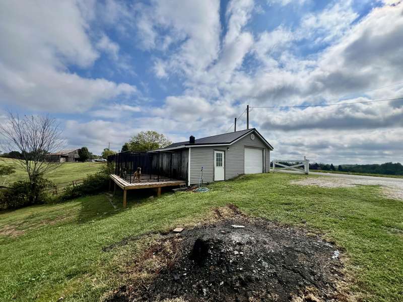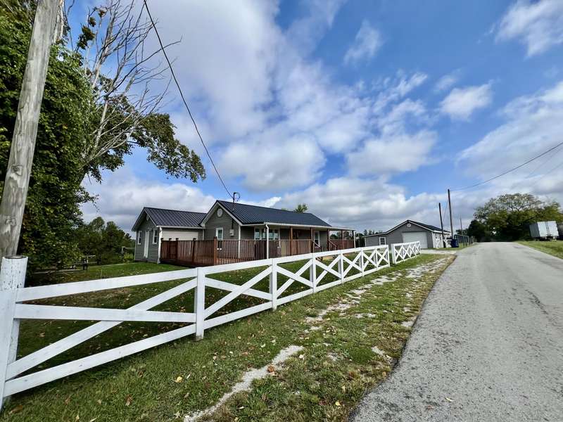 Nestled on a beautiful 3.6-acre setting in the Brindle Ridge area of Rockcastle County, this 3-bedroom, 1-bath home offers the perfect mix of country charm and modern convenience. Inside, you'll find a spacious living room, an eat-in kitchen with appliances to remain, and a utility area tucked neatly in the corner of the kitchen. The home is finished with laminate flooring throughout and is equipped with central heat and air for year-round comfort. The yard surrounding the home is simply breathtaking, offering great views of peaceful country living. Enjoy summer days in the 30 ft above-ground pool with a wraparound deck, or spend evenings at the custom firepit area featuring 4 swings, 4 chairs, and outdoor lighting. A large front porch, partially covered, provides another ideal spot to take in the scenery. The acreage is currently used for grazing horses and includes a hay shed with tack room. Additional improvements feature a 27x48 detached garage with multiple uses. Inside the building, there is a finished 355 sq. ft. room with a half bath, tile flooring, and gas heat-perfect for a studio apartment, office, or hobby space. Another section is set up as a dog kennel, while a separate area is currently used as a garage/workshop, adding even more functionality.