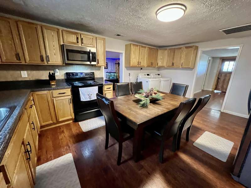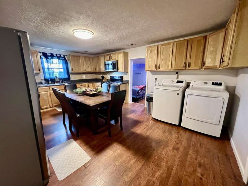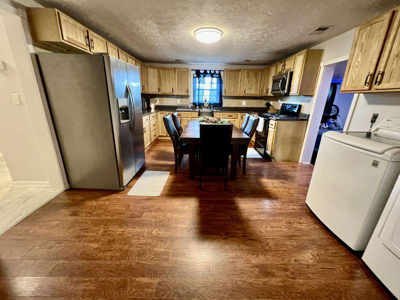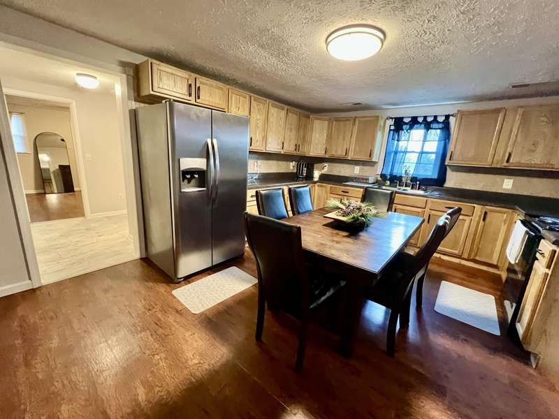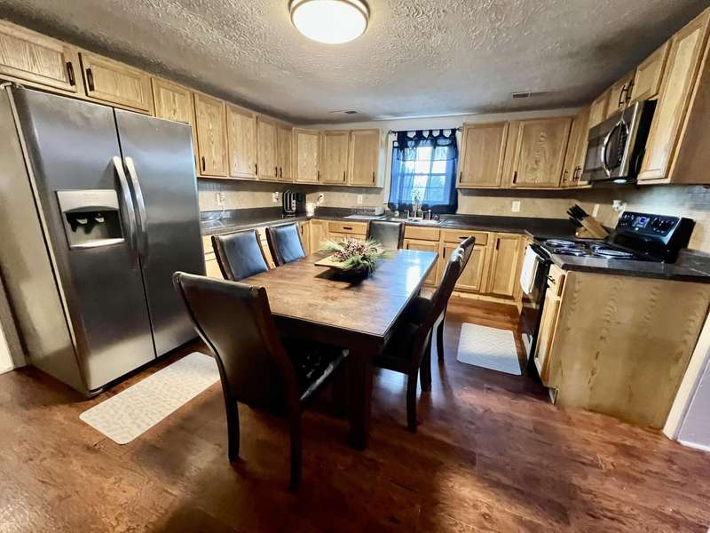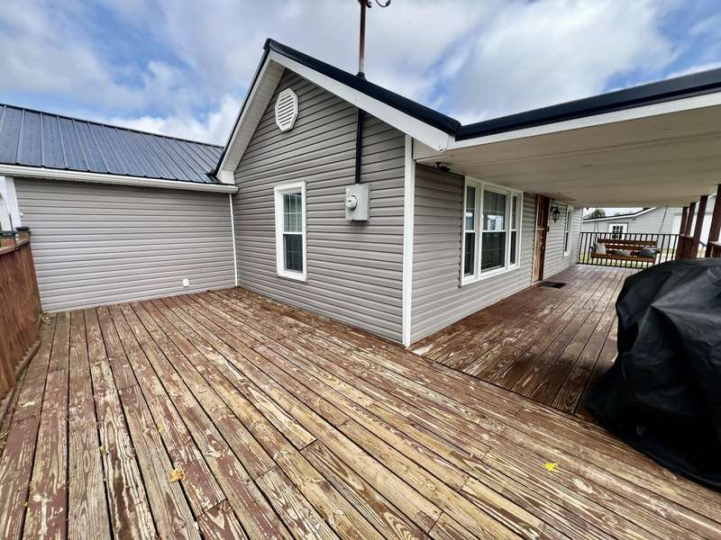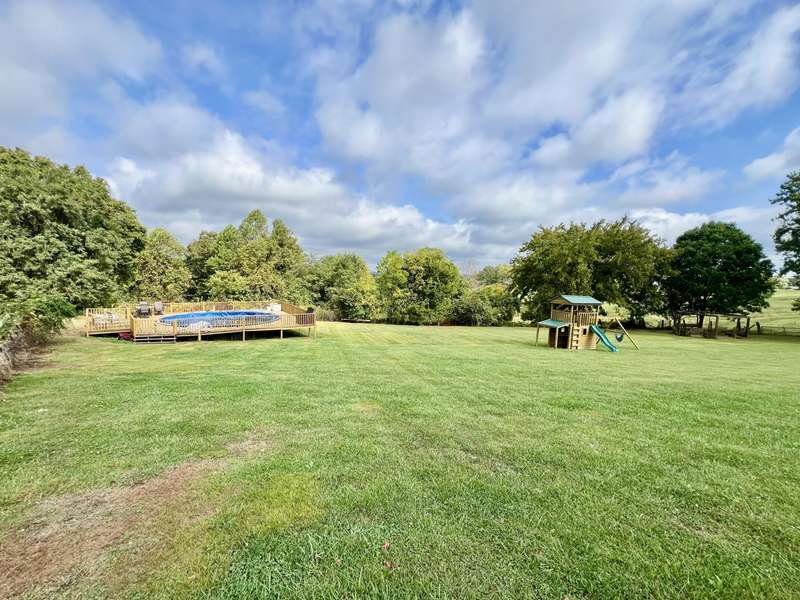 Nestled on a beautiful 3.6-acre setting in the Brindle Ridge area of Rockcastle County, this 3-bedroom, 1-bath home offers the perfect mix of country charm and modern convenience. Inside, you'll find a spacious living room, an eat-in kitchen with appliances to remain, and a utility area tucked neatly in the corner of the kitchen. The home is finished with laminate flooring throughout and is equipped with central heat and air for year-round comfort. The yard surrounding the home is simply breathtaking, offering great views of peaceful country living. Enjoy summer days in the 30 ft above-ground pool with a wraparound deck, or spend evenings at the custom firepit area featuring 4 swings, 4 chairs, and outdoor lighting. A large front porch, partially covered, provides another ideal spot to take in the scenery. The acreage is currently used for grazing horses and includes a hay shed with tack room. Additional improvements feature a 27x48 detached garage with multiple uses. Inside the building, there is a finished 355 sq. ft. room with a half bath, tile flooring, and gas heat-perfect for a studio apartment, office, or hobby space. Another section is set up as a dog kennel, while a separate area is currently used as a garage/workshop, adding even more functionality.