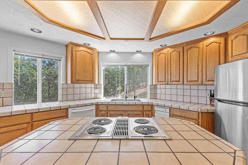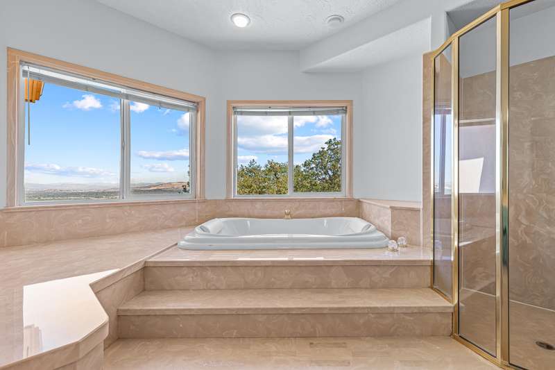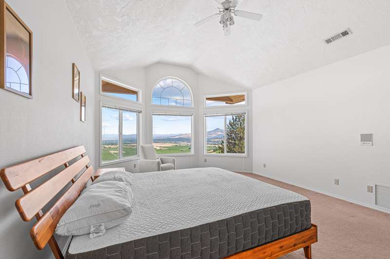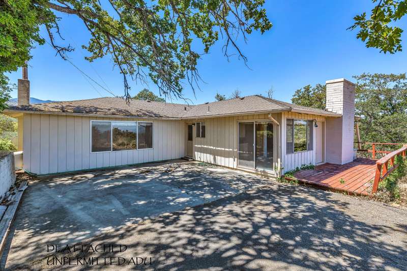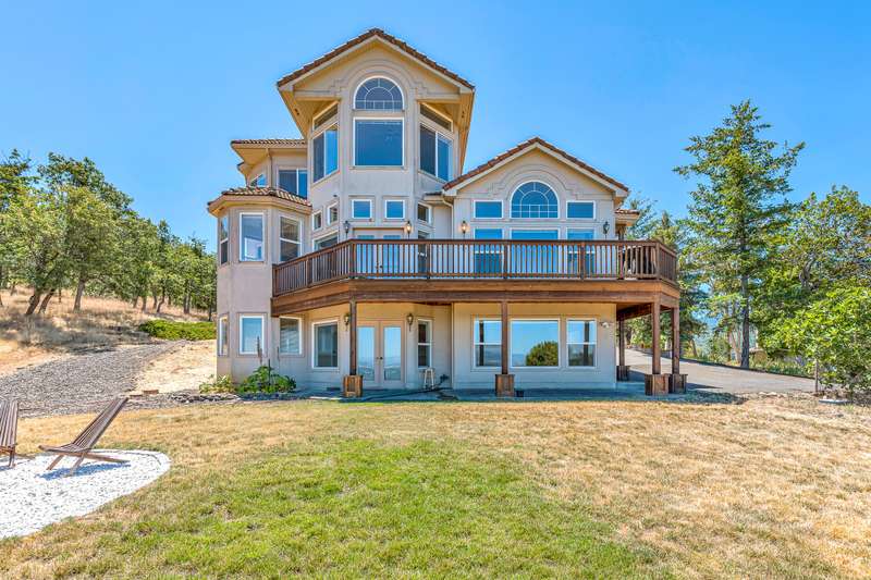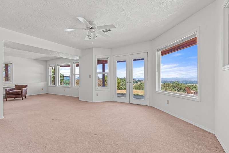 Priced to Sell VIEW home! 3726 SQ FT Home + 1700 SQ FT Art Studio or Hardship Home w/county approval. NW Contemporary style stucco home w/tile roof & stunning valley, sunset & vineyard views! Main home is approx. 3726 SQ FT. DBL door entry, marble entry, curved staircase, lg living rm w/fireplace and floor to ceiling windows, formal dining w/crown molding, wet bar & French door to a deck. Kitchen island, walk in pantry & breakfast rm. Upper-level w/dbl doors to primary suite w/amazing views, dual sink vanity, jetted tub, lg marble shower & walk in closet. Lower-level w/ great family rm, floor to ceiling rock fireplace, wet bar, indoor sauna & hot tub with windows overlooking the views. 3 car garage w/separate office room just off the laundry room. The old original home would make a perfect Art studio, Office or Hardship Home w/approval from county w/4 bdrms, 2 baths and approx. 1700 SQFT with open beam ceilings in living rm.
