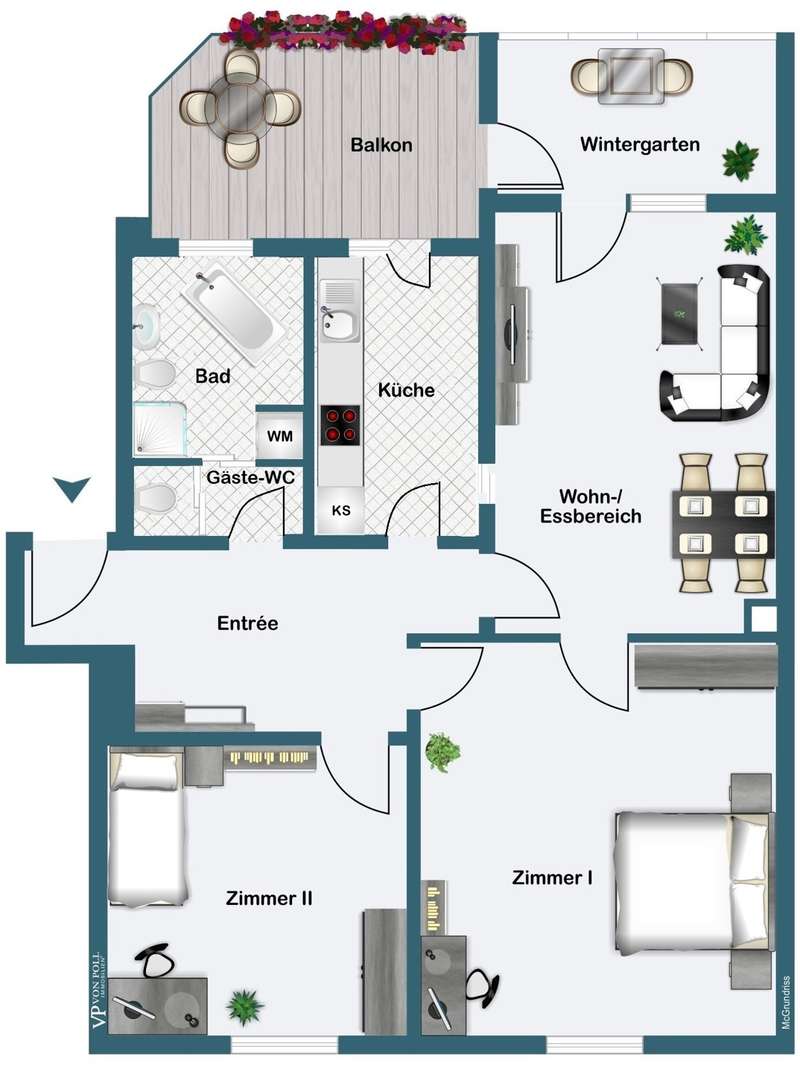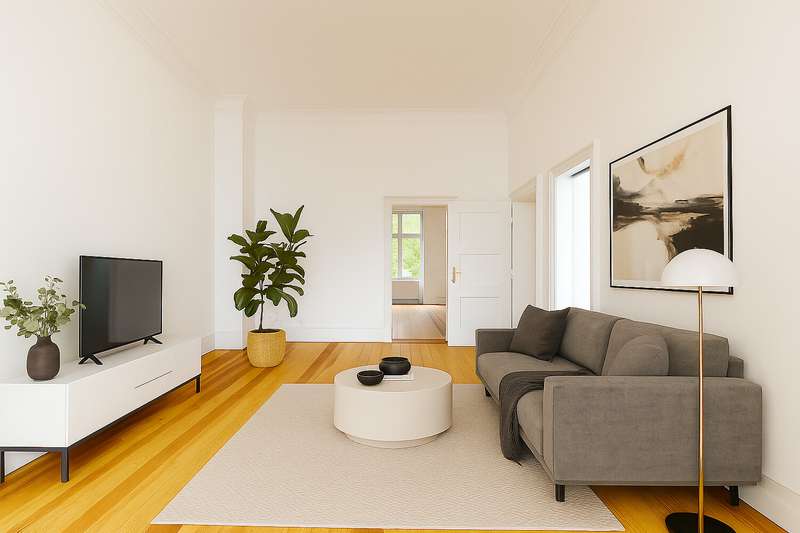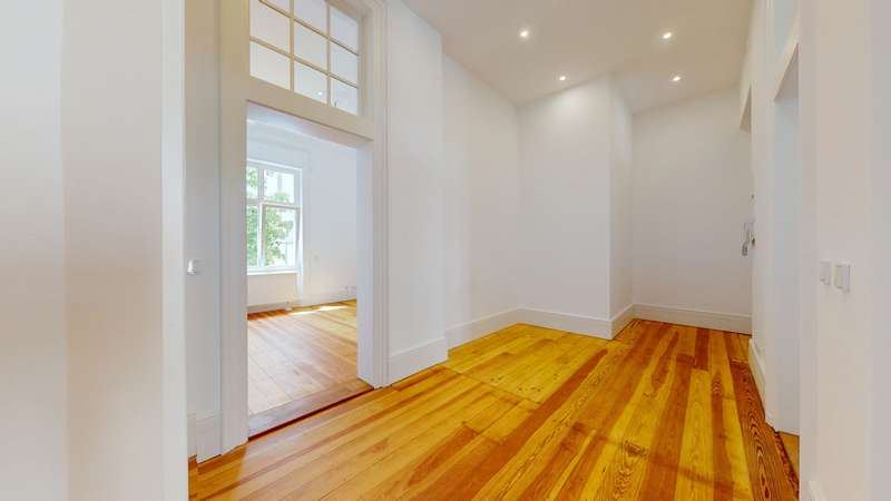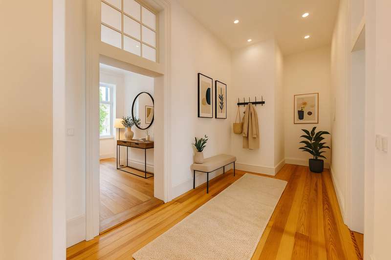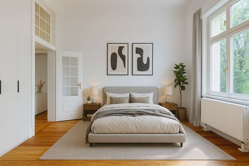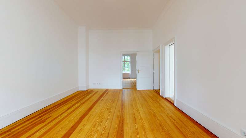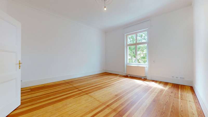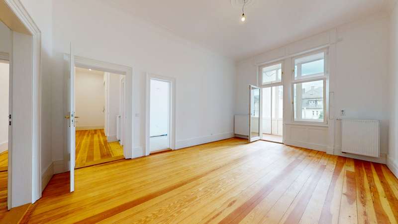 This charming apartment is located in a prestigious old building from 1900 in the sought-after Westend district and is now ready for first-time occupancy following extensive refurbishment. As soon as you enter, you are greeted by a spacious entrance hall from which all rooms are easily accessible. High ceilings, elegant floorboards, classic stucco and exclusive furnishings give the apartment its character. The heart of the apartment is the spacious living room with direct access to the stylish kitchen and the heated conservatory. From here you can enjoy a beautiful view of the skyline - a highlight. In addition, the living room and bedroom are connected by an elegant connecting door, allowing for flexible room layouts. The modern fitted kitchen, which will be installed when you move in, with access to the balcony impresses with its high-quality fittings and offers maximum convenience both in everyday life and during social evenings. The balcony extends the living space into the open air and invites you to relax - ideal for a break in the middle of the city. The bright daylight bathroom is modern and tastefully designed - with a shower, free-standing bathtub, washbasin and separate guest WC. The washing machine connections are functionally located in a separate area of the bathroom. A separate cellar room offers additional storage space. A bicycle parking space is also available - a practical advantage in an urban environment. The apartment is rented for a minimum rental period of 24 months and is available for occupancy by individual arrangement.