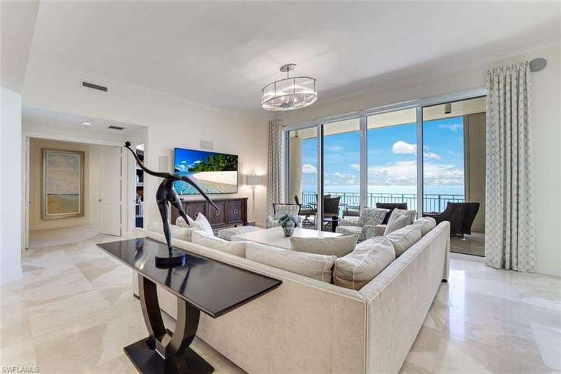 Perched above the shimmering Gulf waters this exceptional 3600 a/c sq ft, 3-bedroom, 3.5-bath residence offers expansive living and family room areas, a spacious den, and soaring 11-foot ceilings-available only in select units. Floor-to-ceiling impact sliders and windows frame the breathtaking panoramic views of the Gulf of America, the 10,000 Islands, and Marco Island. Designed for both comfort and elegance, this home features a rare private 2-car air conditioned garage located directly under the building-an uncommon and highly sought-after convenience. With luxurious open living spaces and sweeping water views, this residence is a true coastal retreat.